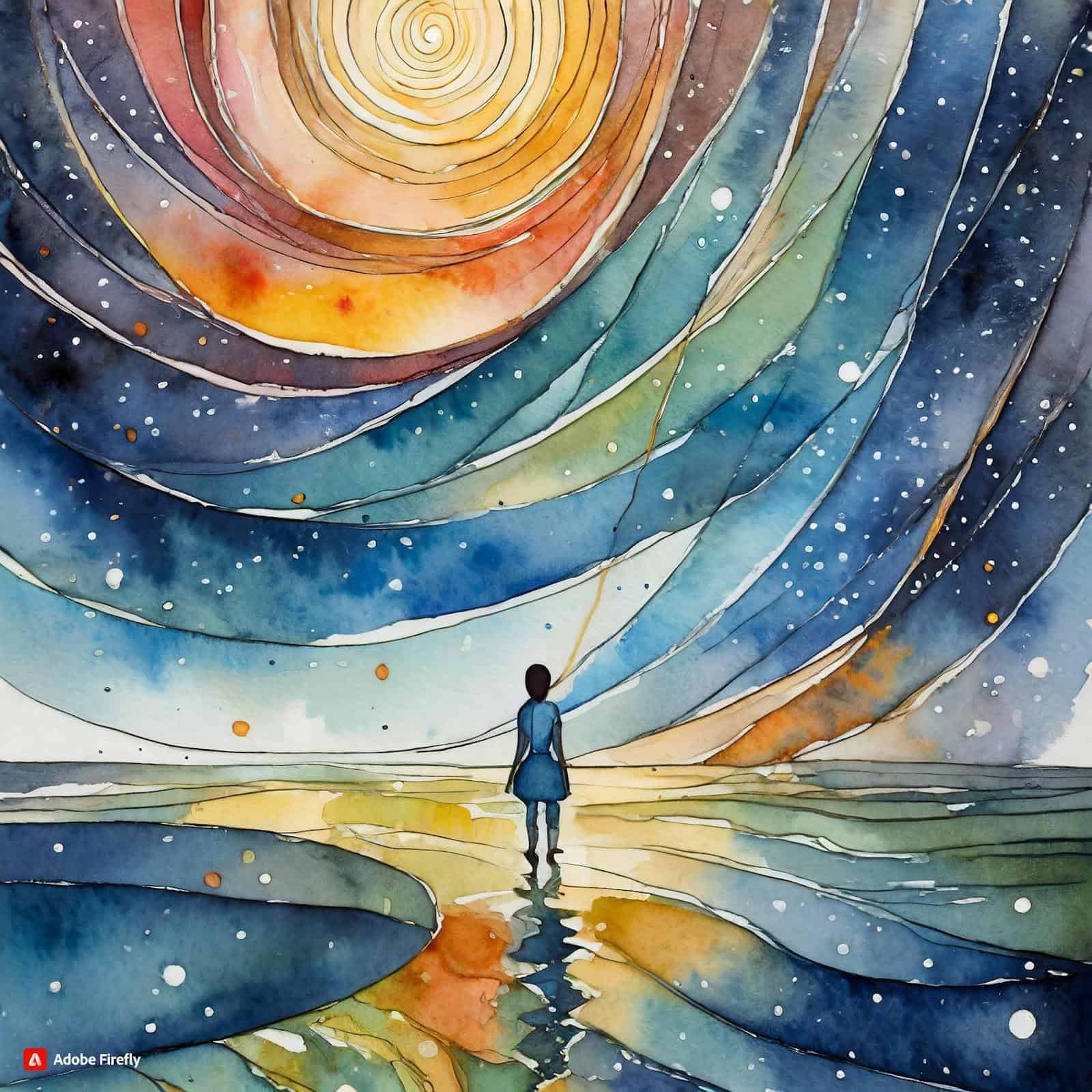 Prompt: the vastness of the universe, watercolor, intricate art, minimalism
