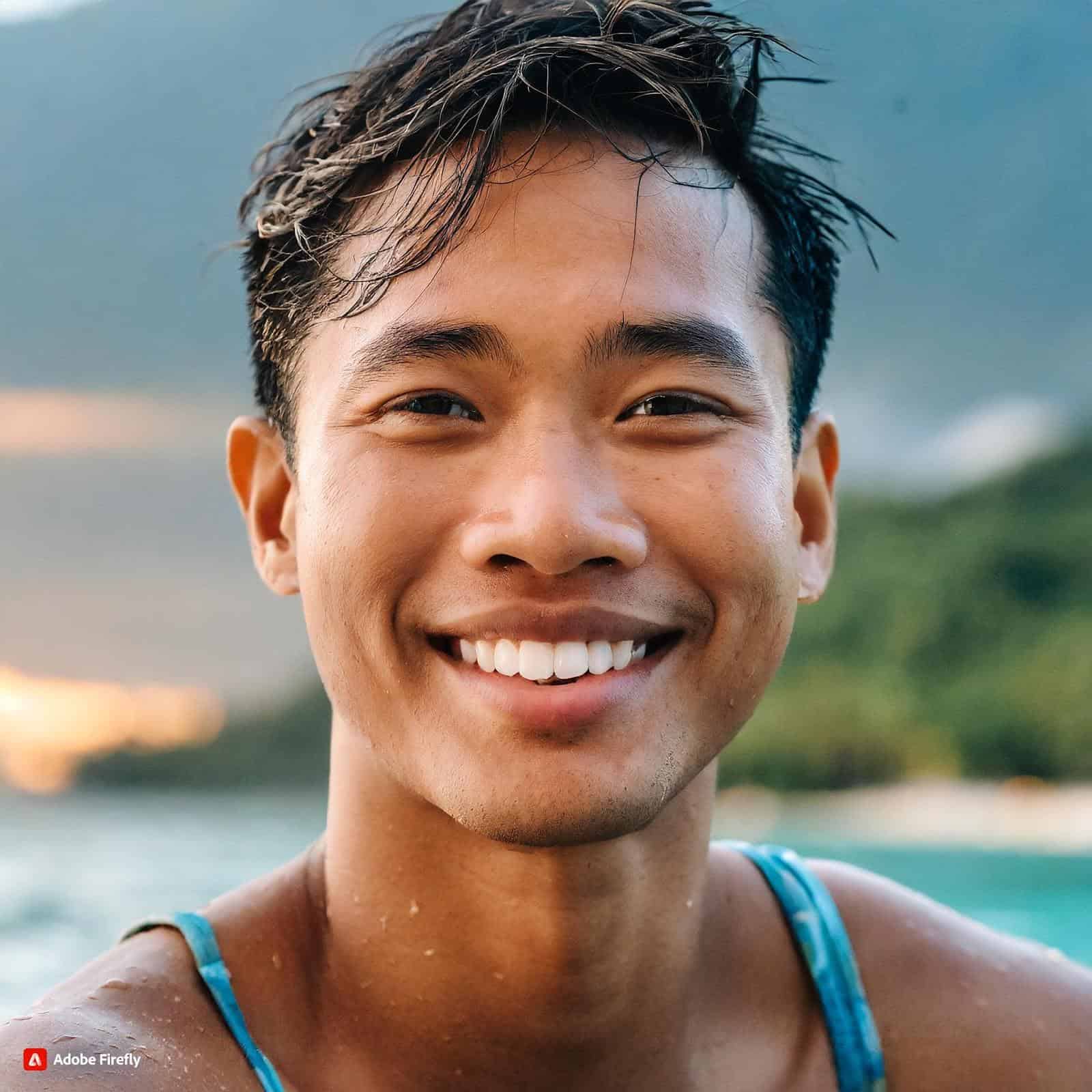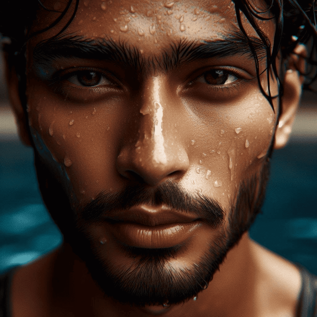 Prompt: portrait photography, a man after a swim, extreme closeup, candid