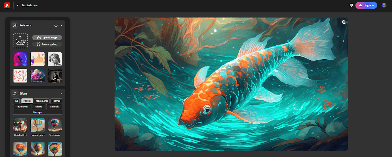 Adobe Firefly 2 has tons of output customization features. You can choose an aspect ratio, switch between art and images, tweak stylization strength, and even pick a camera angle. It also allows you to choose an effect to add to the output, and upload an image as style reference.