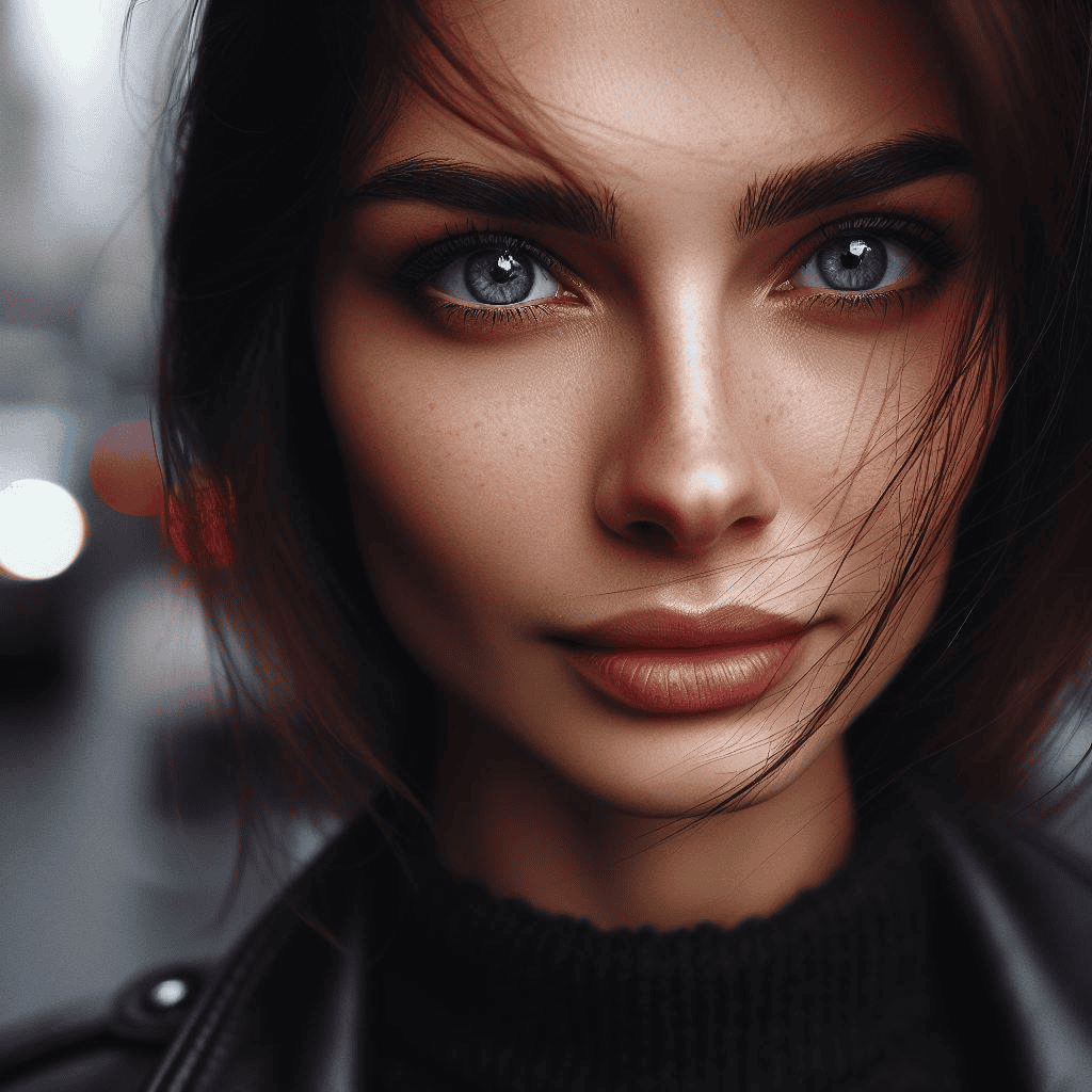Prompt: portrait photography, a woman with green eyes, close-up shot, high quality photo, street photography, natural light