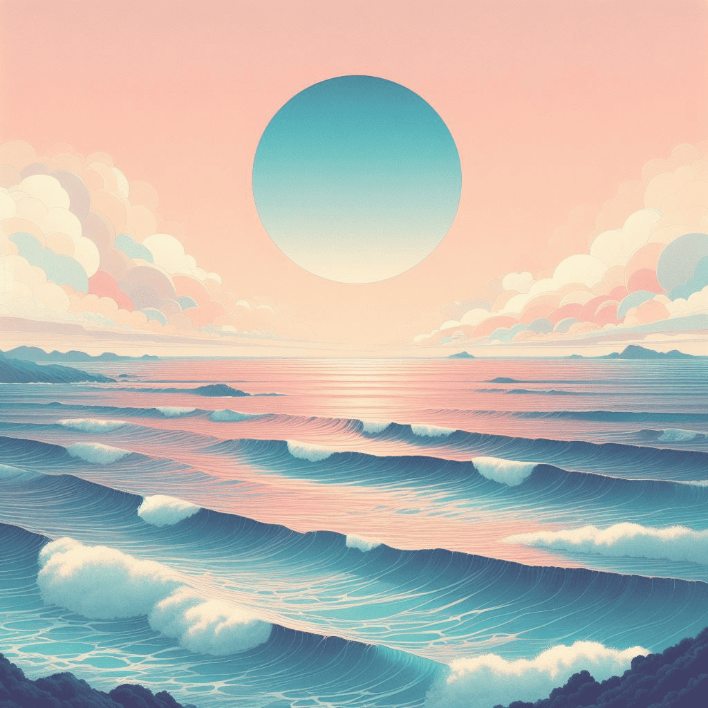 Prompt: ocean waves, pastel colors, gradient sky, subtle