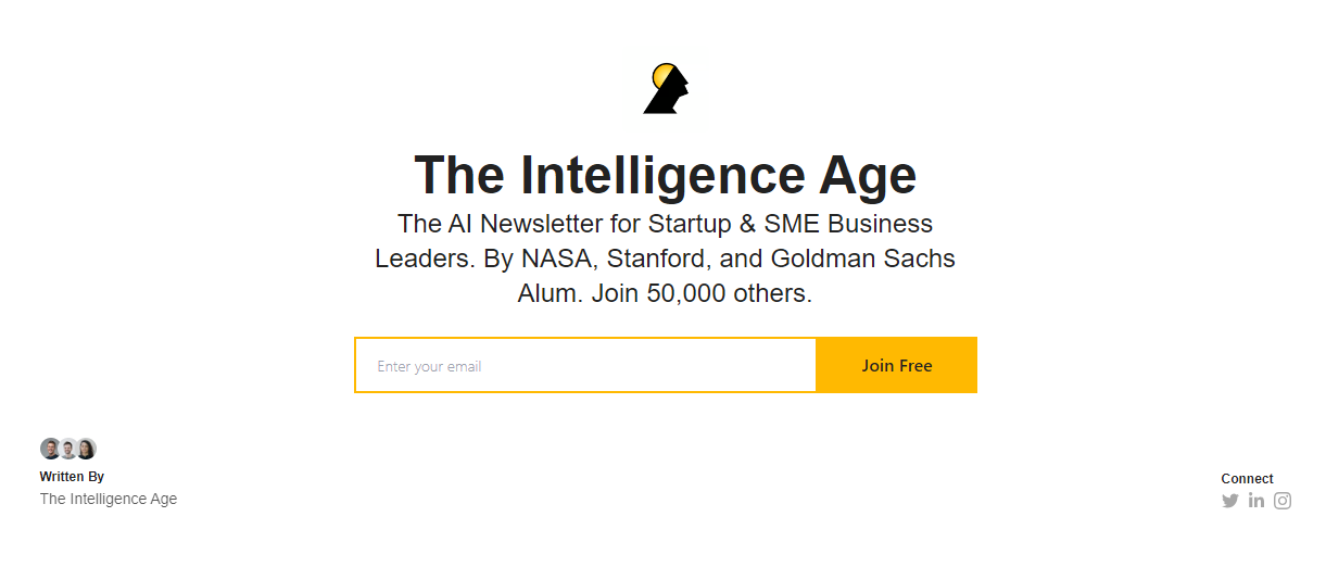 Overview: The Intelligence Age is an insightful daily newsletter with 50,000 and growing subscribers. It’s run by industry veterans from NASA, Stanford, and Goldman Sachs. Their content encompasses PSAs, news articles, and tutorials.