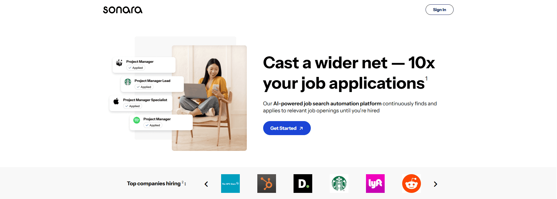Sonara pitches itself as your personal job-hunting assistant that never sleeps. Once you upload your resume and preferences, it continuously applies to relevant job listings in the background—no manual input required.