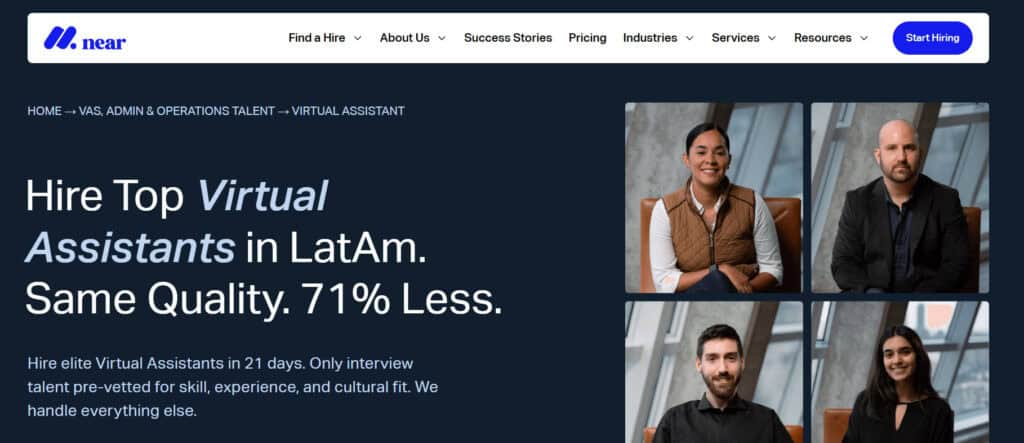 Near has the most aggressive content operation in the LATAM hiring space. But the service is solid. Curated video shortlists in 3 to 5 days, most roles close within 3 weeks, and a 4.9/5 on G2 with 100+ reviews.