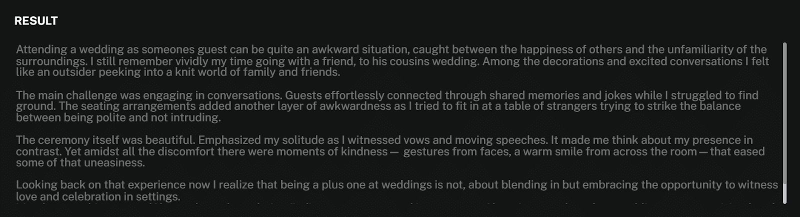 The other way is by adding intentional human errors. This includes adding misspellings, improper grammar, and misplacing punctuation marks. While this makes for less AI likelihood score, it does make your input a lot more unreadable. For more information, I highly recommend this article.