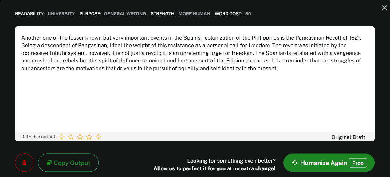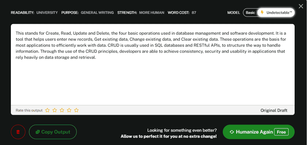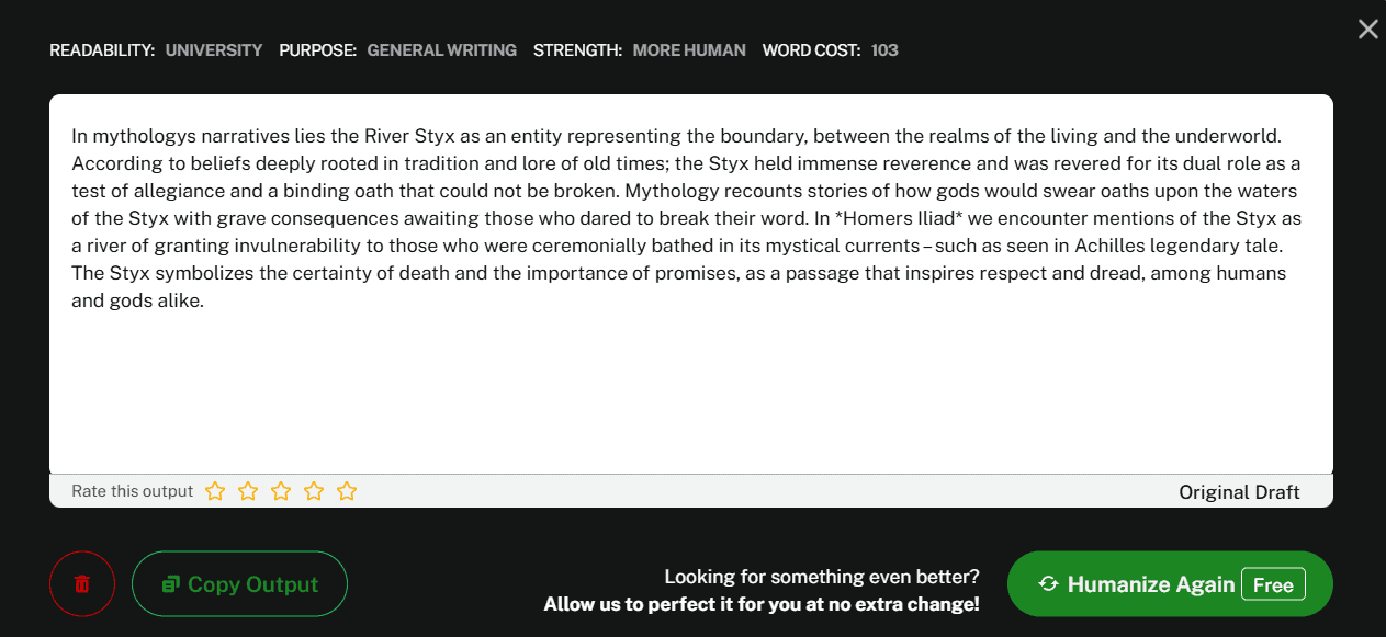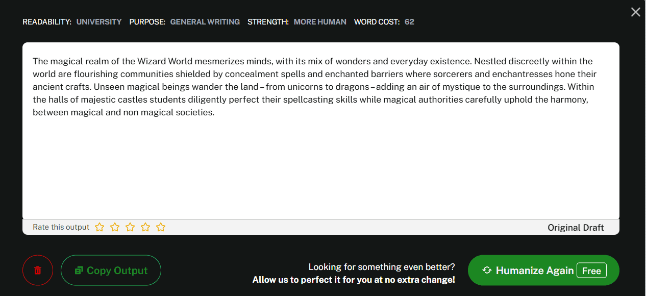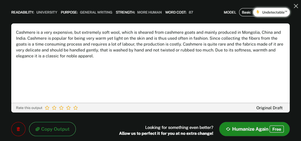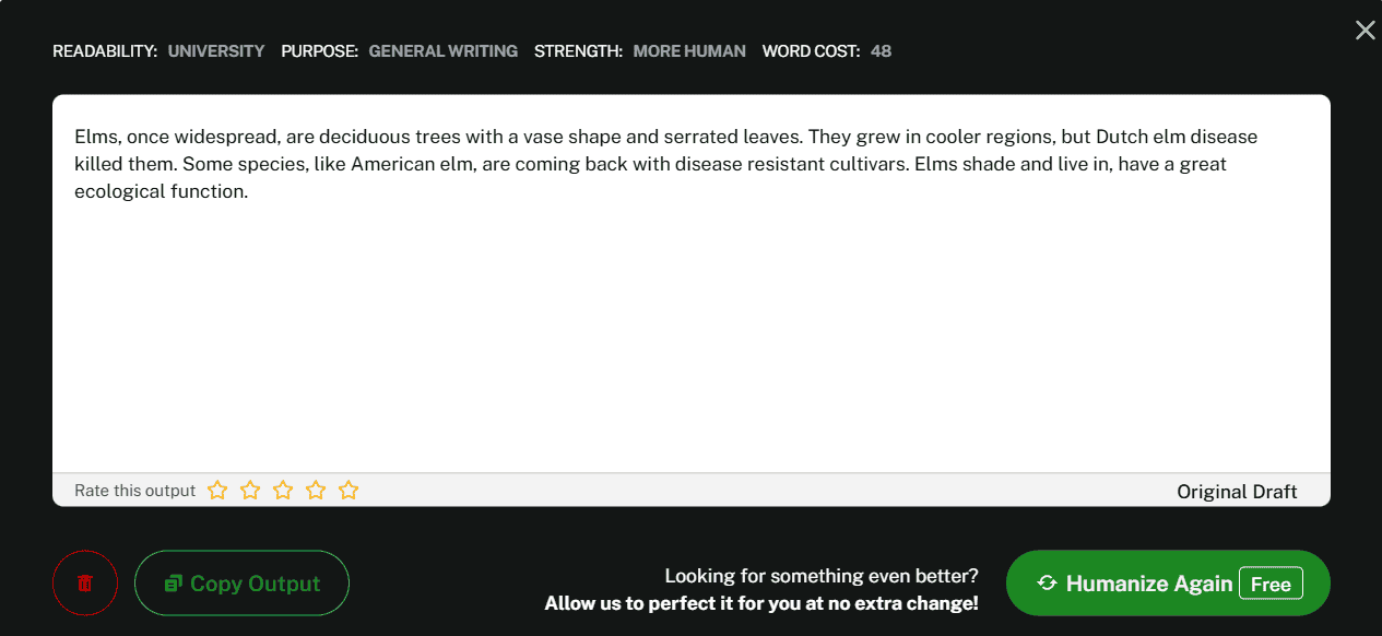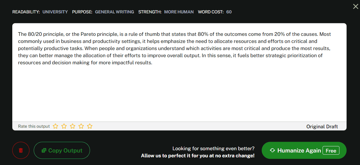 Sometimes you’ll still want to edit the output yourself to match your exact tone or add that last bit of polish. But as a way to reduce risk, increase fluency, and help AI text blend in, it’s one of the strongest tools out there right now.
