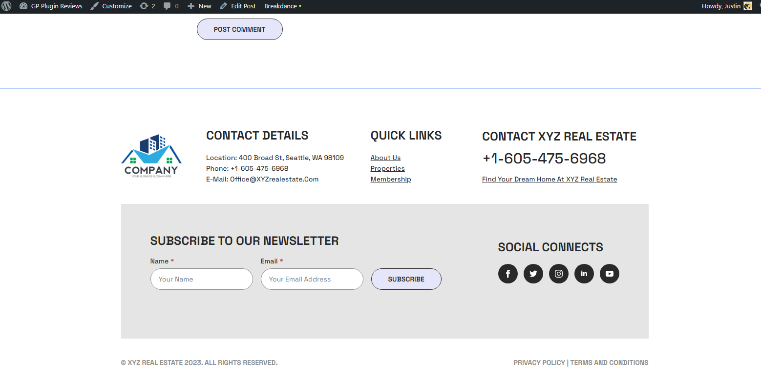I’ve written the steps below to create a simple footer for a real-estate business. Feel free to edit this to meet your unique needs.