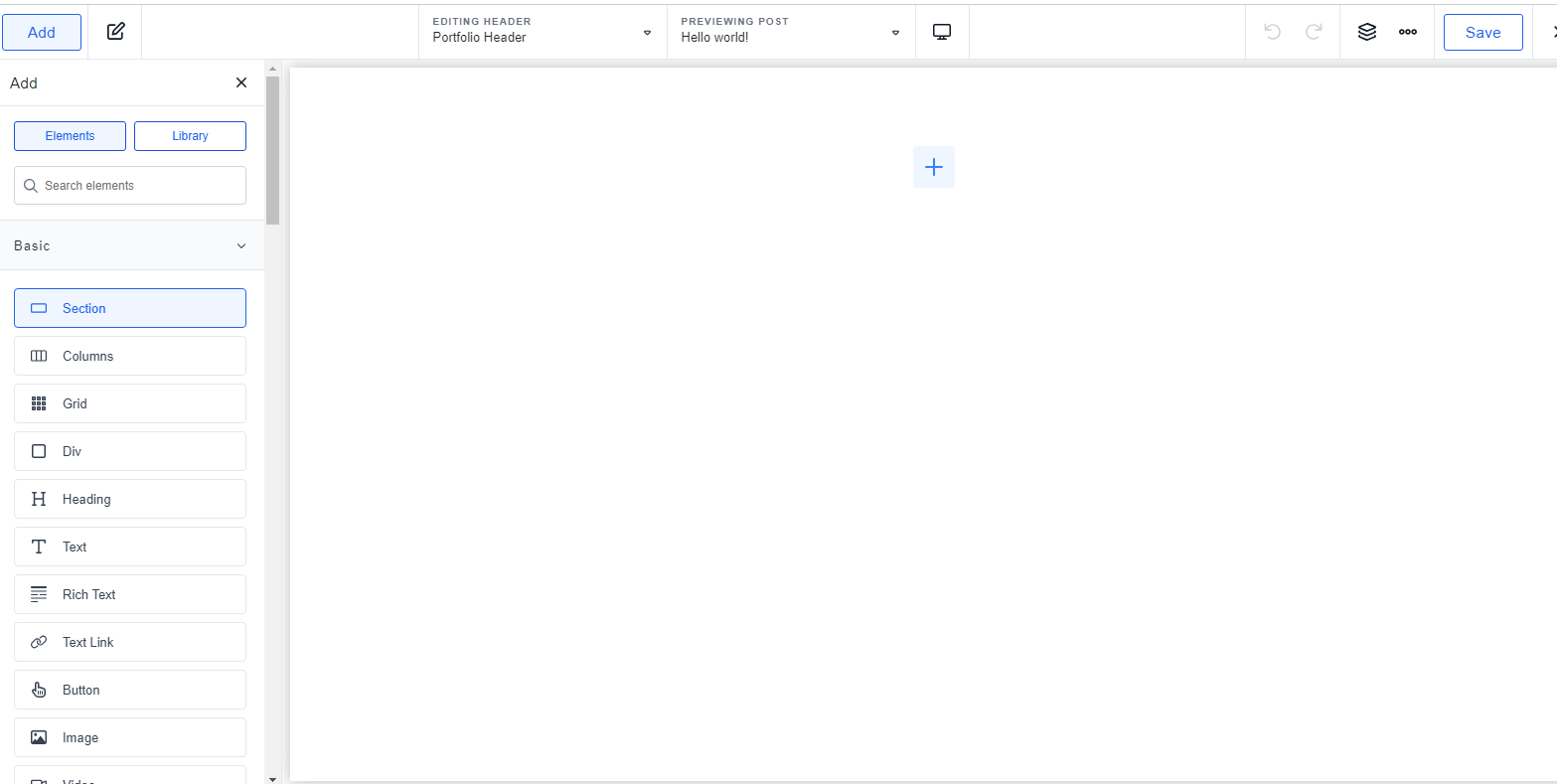 2. Head over to your Breakdance editor. First, let’s add a header builder.