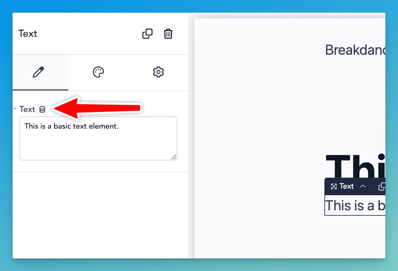 So you can actually add data on pages, posts, themes, wherever you want. And it's very simple. To add dynamic data, find the field you want to be dynamic (a text label, image, video, etc) and click on the small server rack to the right of it.