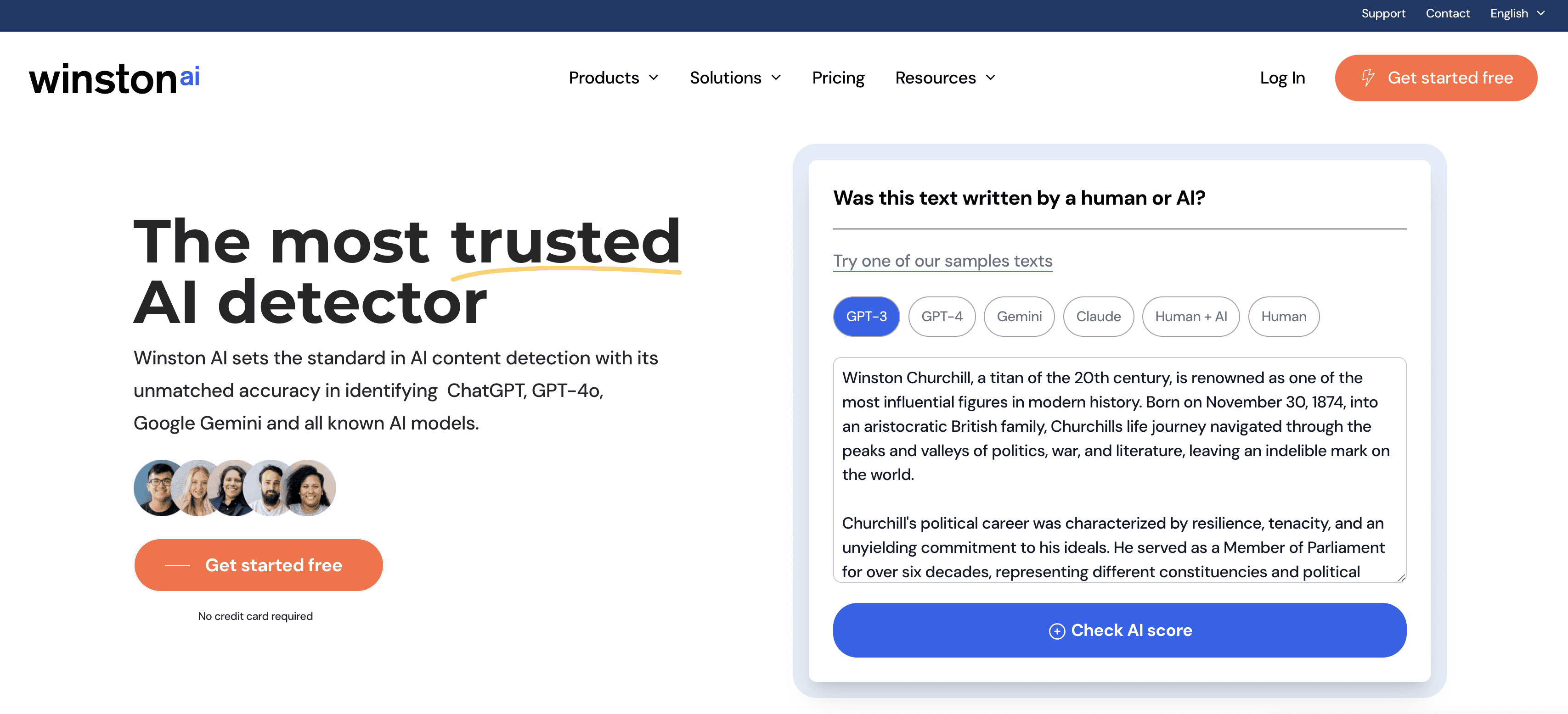 Another popular option is Winston AI, which is a standalone AI detection platform made to tackle every LLM there is. Despite a 59.2% average false positive score in our test, it still secured the top spot for true positive AI content with a strong 91.92% — but that doesn’t tell the whole story. In fact, Winston AI went 11/12 (all correct scores being 100%) in our test that included text tweaked by Undetectable AI, an AI bypasser.