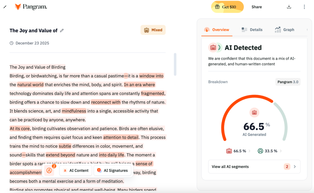 Beyond automated tools, you could do a little more digging yourself. I won't lie – it's very hard at first. It's getting extremely difficult to detect since these generators are just able to write more and more like humans.