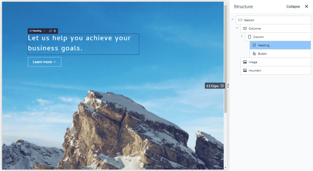 e) Add other elements as you wish. Here, I’ve added a header and button at the top of the section.