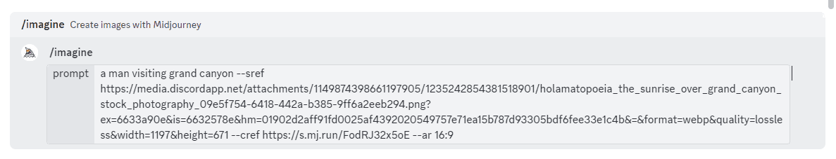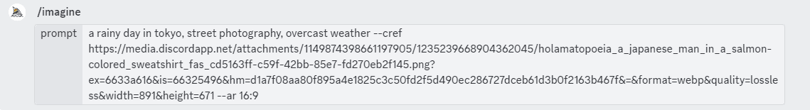 The only difference is that at the end of the prompt, before you choose an aspect ratio or switch between models, write the keyword --cref, followed by the link you just copied.