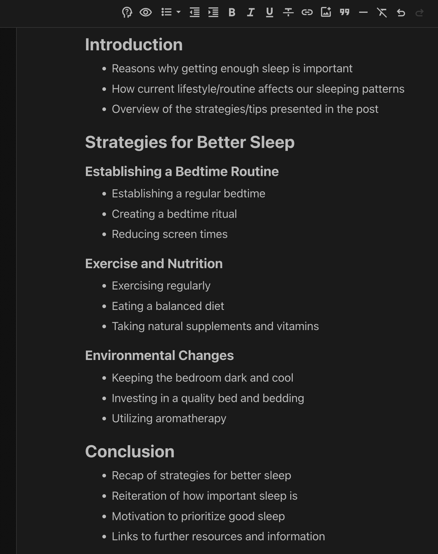 I've noticed Lex generates really great outlines to work off of. I haven't seen other tools produce something as complete as this, other tools seem to repeat themselves a lot more. Writers can extend on these points and create full-length articles. I mean 3 details for 5 sections straight off the bat? That's pretty impressive.