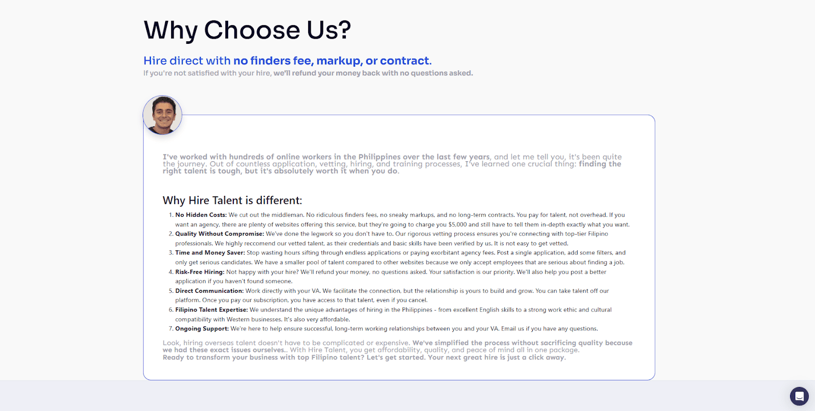 HireTalent is still growing, their talent pool isn't massive, and yes, they're more expensive than some alternatives. But they're doing something different in an industry that desperately needed a shake-up.