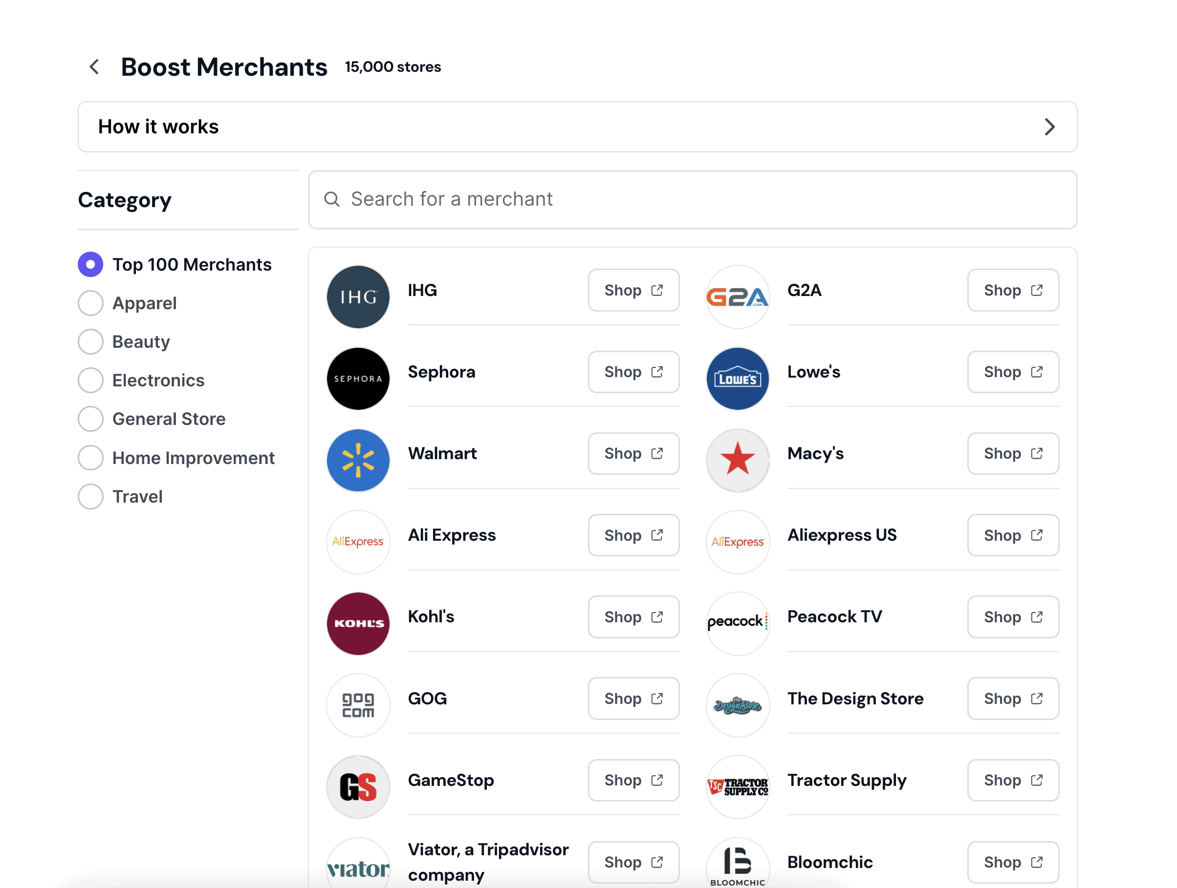 - They earn a small affiliate commission when you make an online purchase at one of their participating merchants (the places which you can activate a boost on).