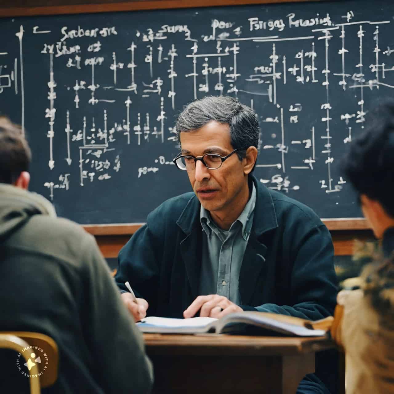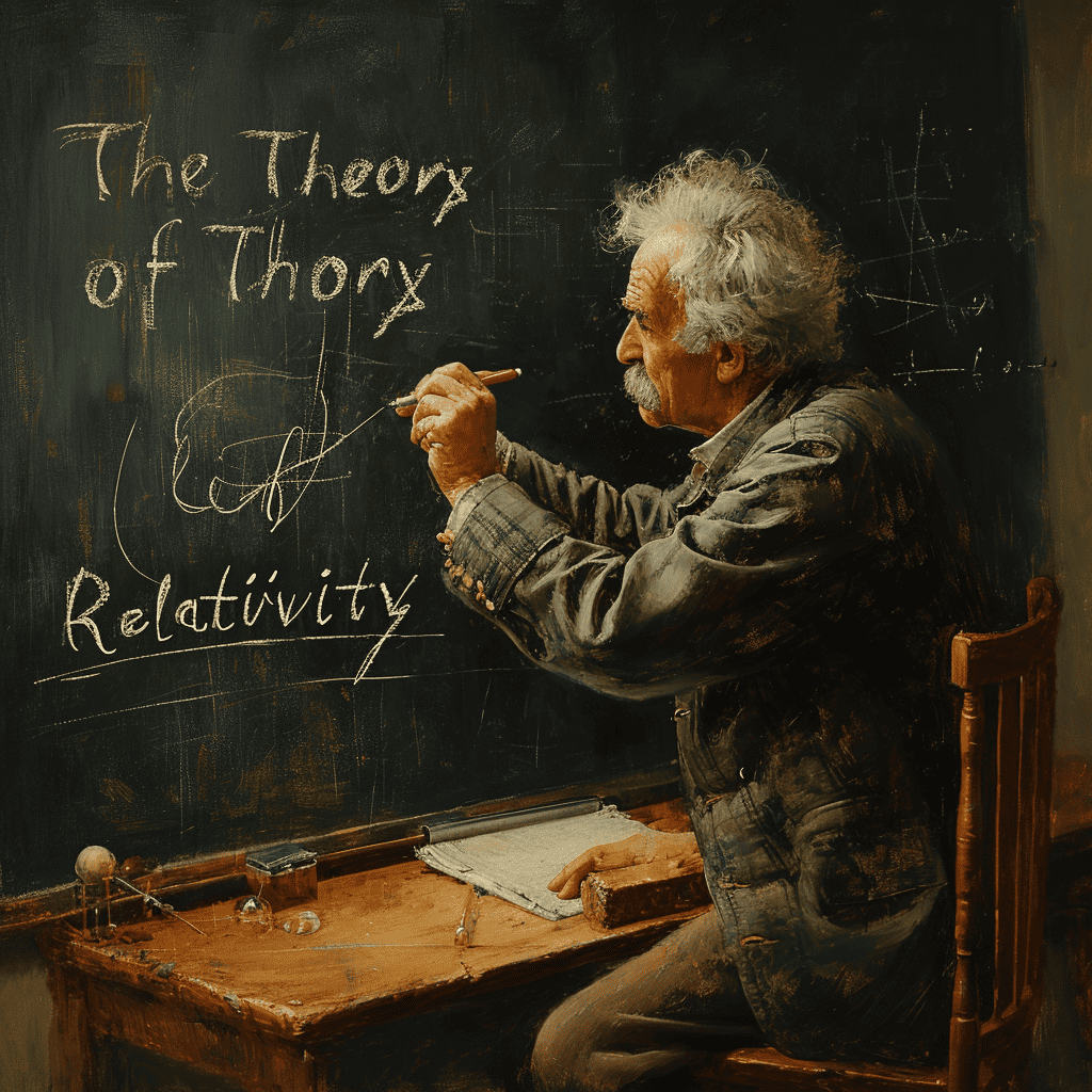 Prompt B: a professor writing "The Theory of Relativity" in a blackboard