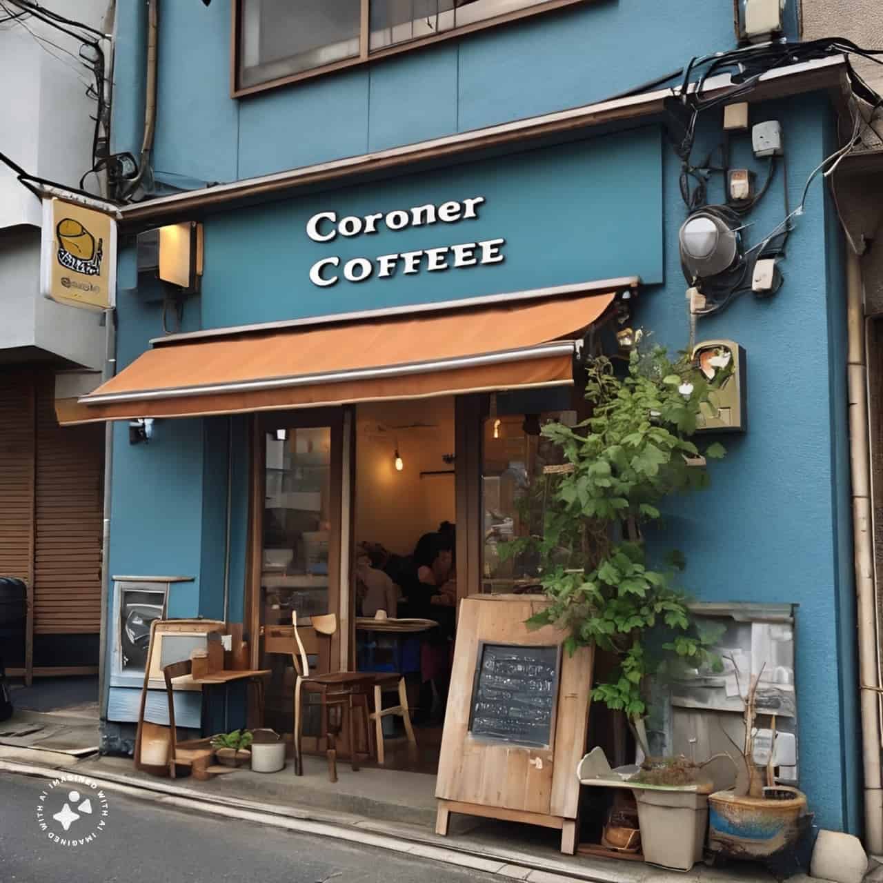 Prompt A: a bohemian coffee shop named "Corner Coffee"