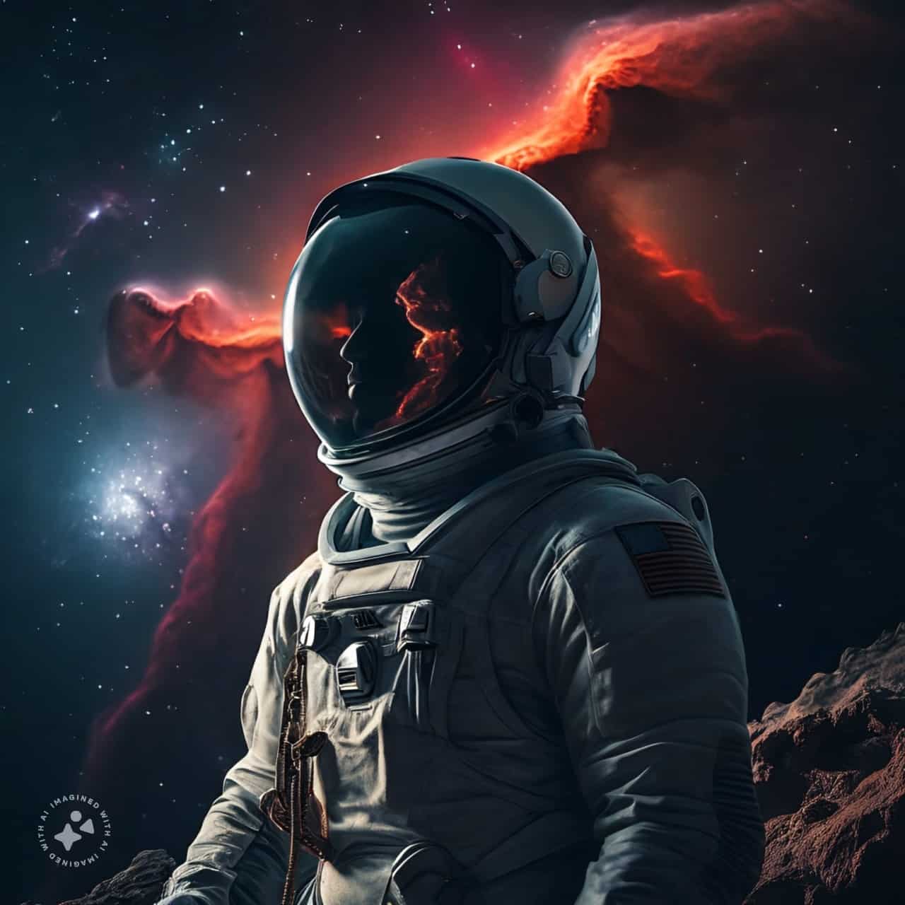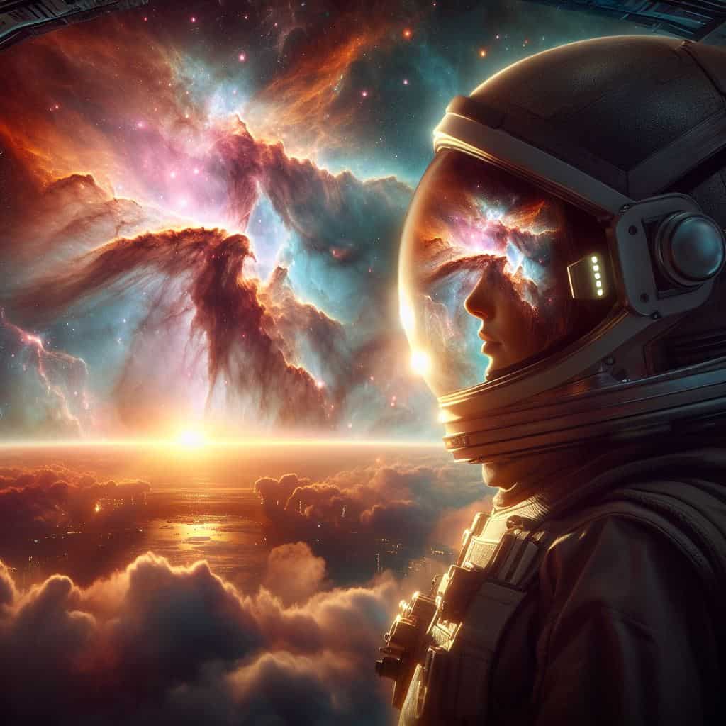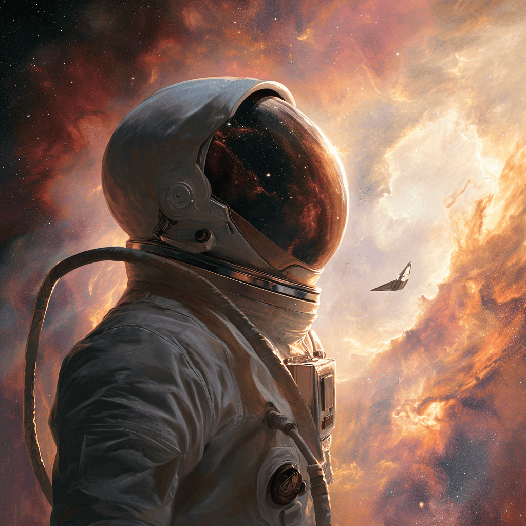 Prompt A: a breathtaking and cinematic portrait of a lone astronaut gazing out at the swirling nebulas of the Horsehead Nebula, their helmet reflecting the cosmic spectacle, as their large spaceship explodes behind them. soft and dramatic lighting. evoking a sense of awe, wonder, and danger.