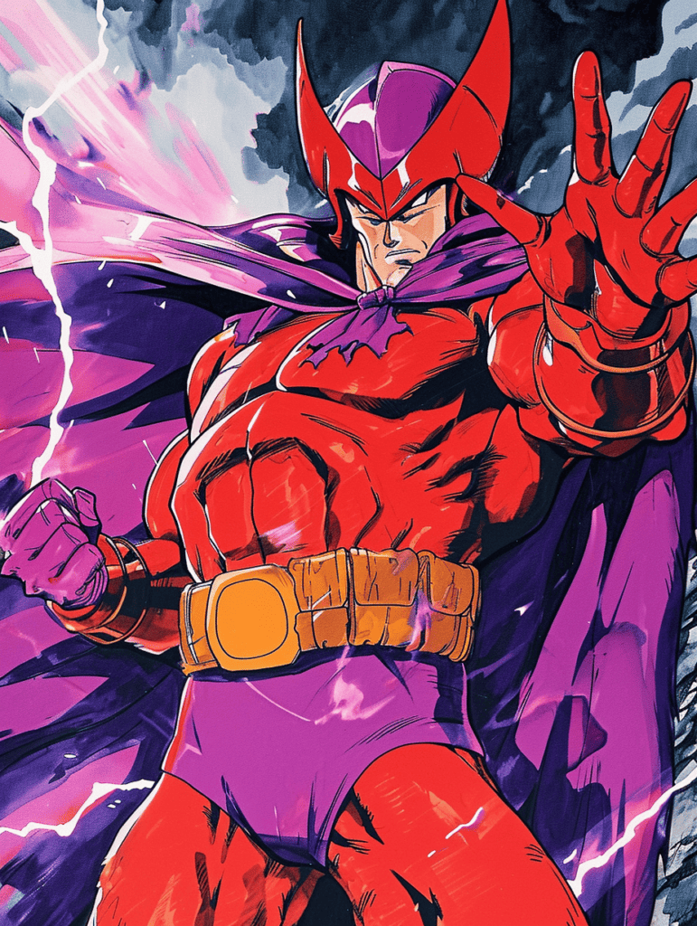 Prompt A: Magneto in a dvd screen grab of Dragon Ball Z, drawn by Akira Toriyama, animated by Toei animation studio, 1985 Japanese anime