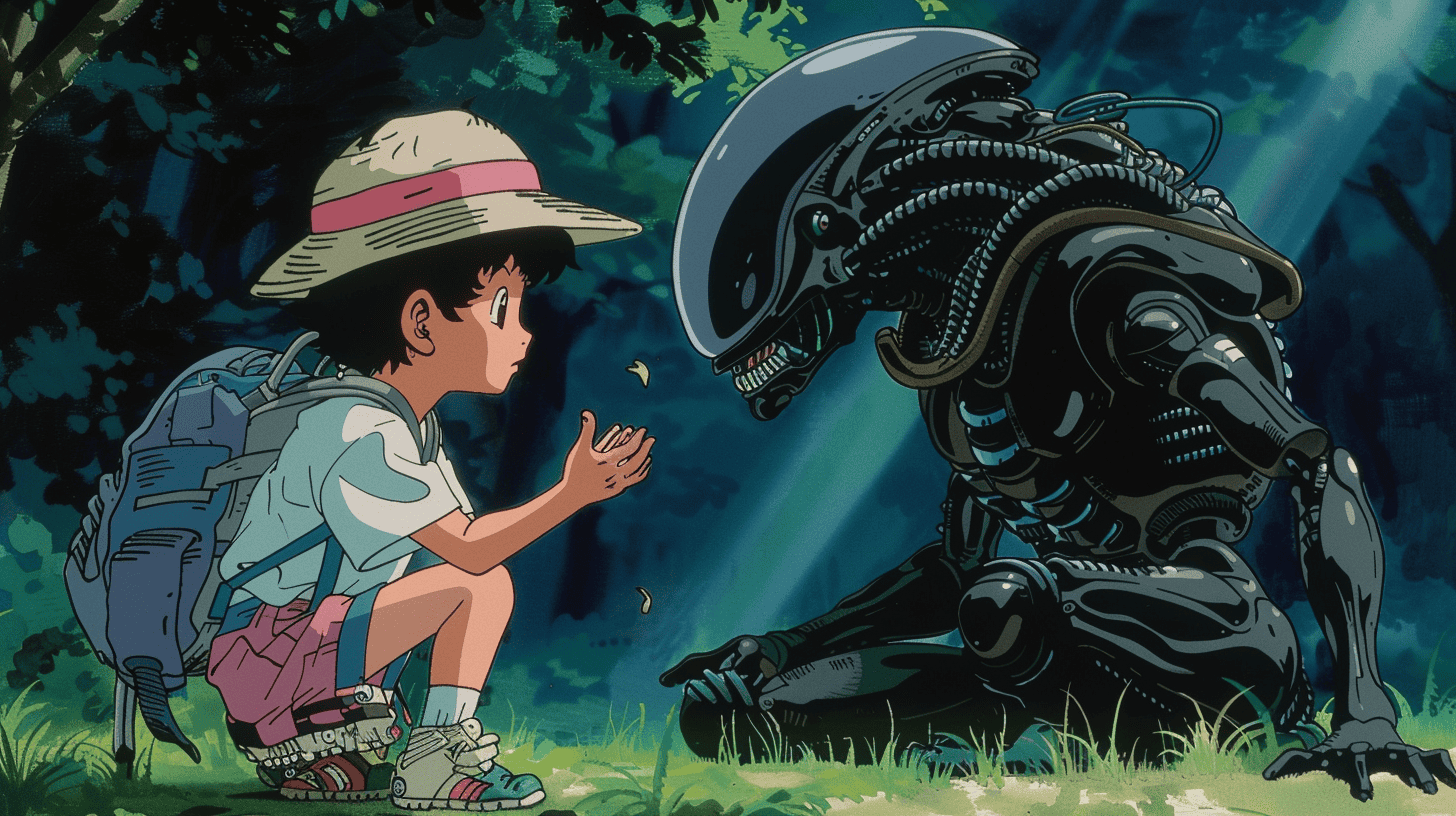 As a side-note, it does amuse me a little that Midjourney’s idea of “alien” is the literal alien from James Cameron’s film. It does make for a funny crossover with the Dragon Ball universe.