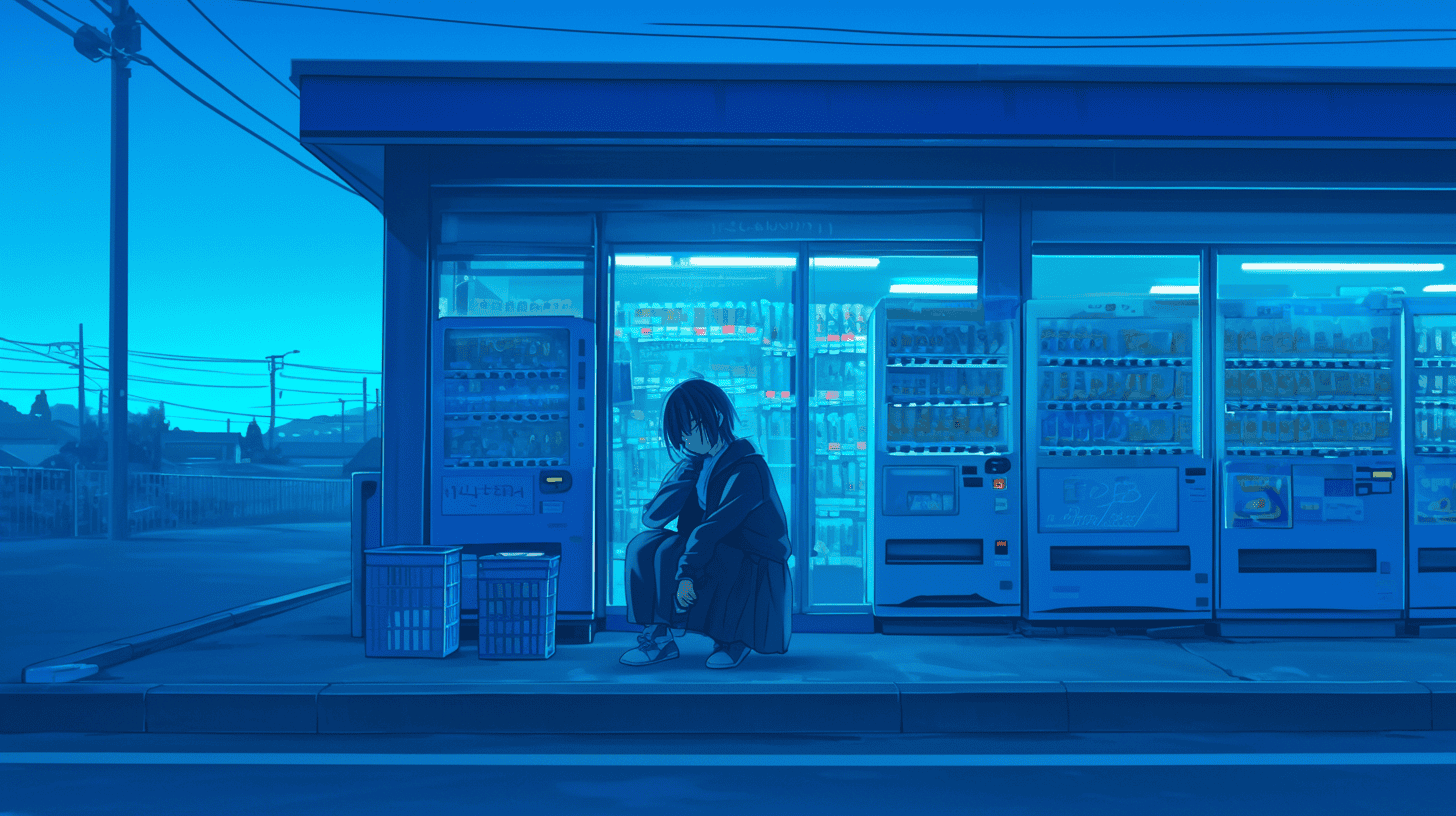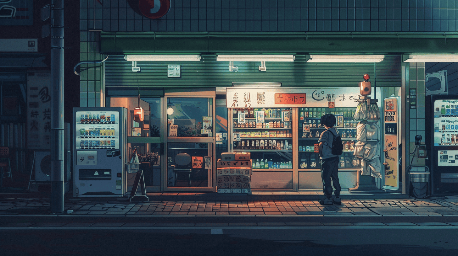 Prompt: slice of life anime, a tired convenience store worker, night, 3am aesthetics