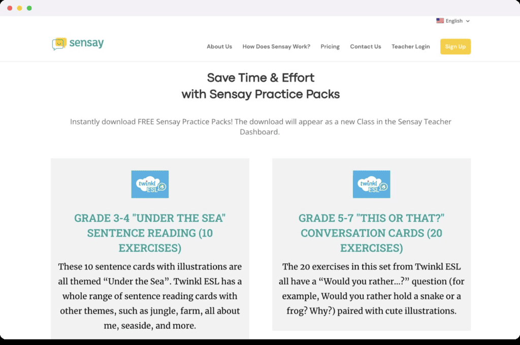 Learning English shouldn’t be difficult, and Sensay makes it so much easier. Apps can also be a hassle to use with students both in or outside a classroom environment. Sensay is a website, so there is no need to download anything.