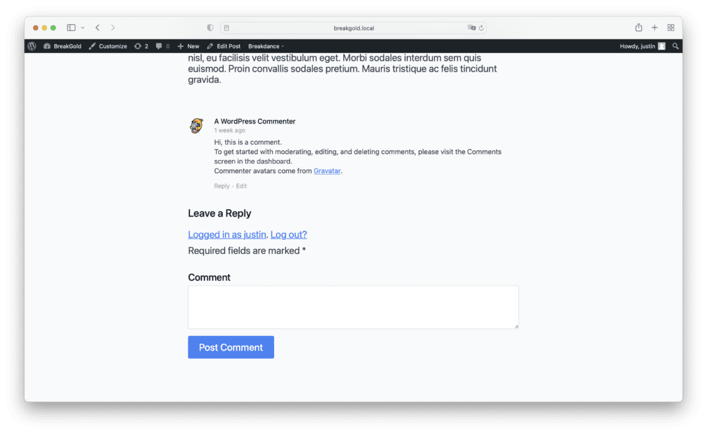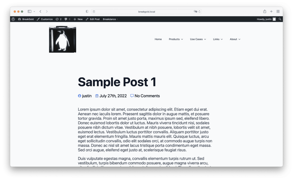 The default post page will be enabled and activated when you first create your site. All you need to do is write your content and publish it. Navigate to any published post and you should see a page that looks similar to this: