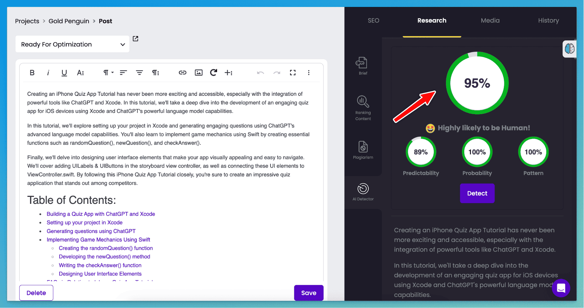 And just like that, you have AI content that isn't detectable by most of the major checkers. That said, some of its outputs will still slip through the cracks and be identified as AI, so be careful and always recheck if you can with tools like Winston and Originality.