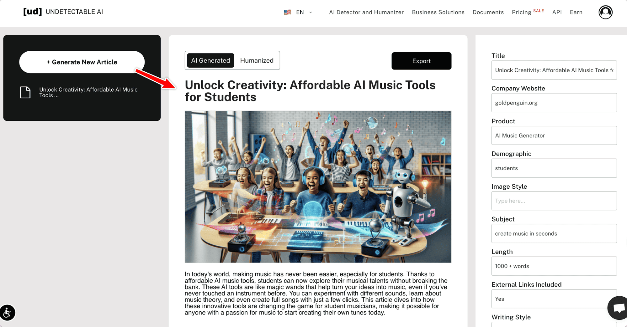 Again, it really matters what the use of you looking for an undetectable AI writing software is for, but if you want to generate long-form, undetectable AI articles, this is 100% the go-to tool to use.
