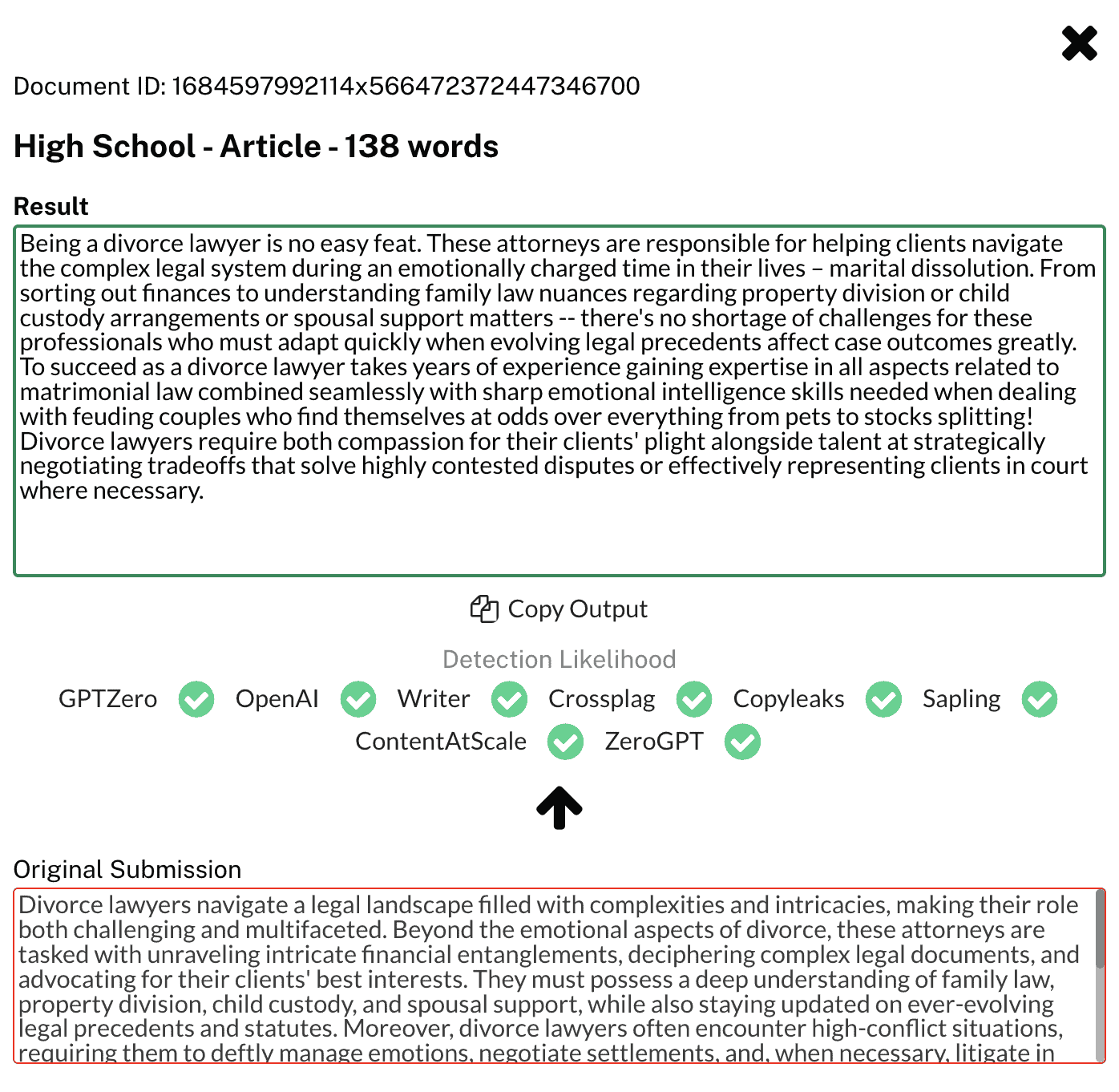 I also wanted to point out that, among all the AI bypass tools I’ve used, this is the first one that had an output that completely made sense. Of course, it’s not error-free — but it’s a more coherent thought than other rewriters. It just doesn't do as well in detection tools which, if we’re being honest, is the only reason why you should use bypassers over Grammarly.