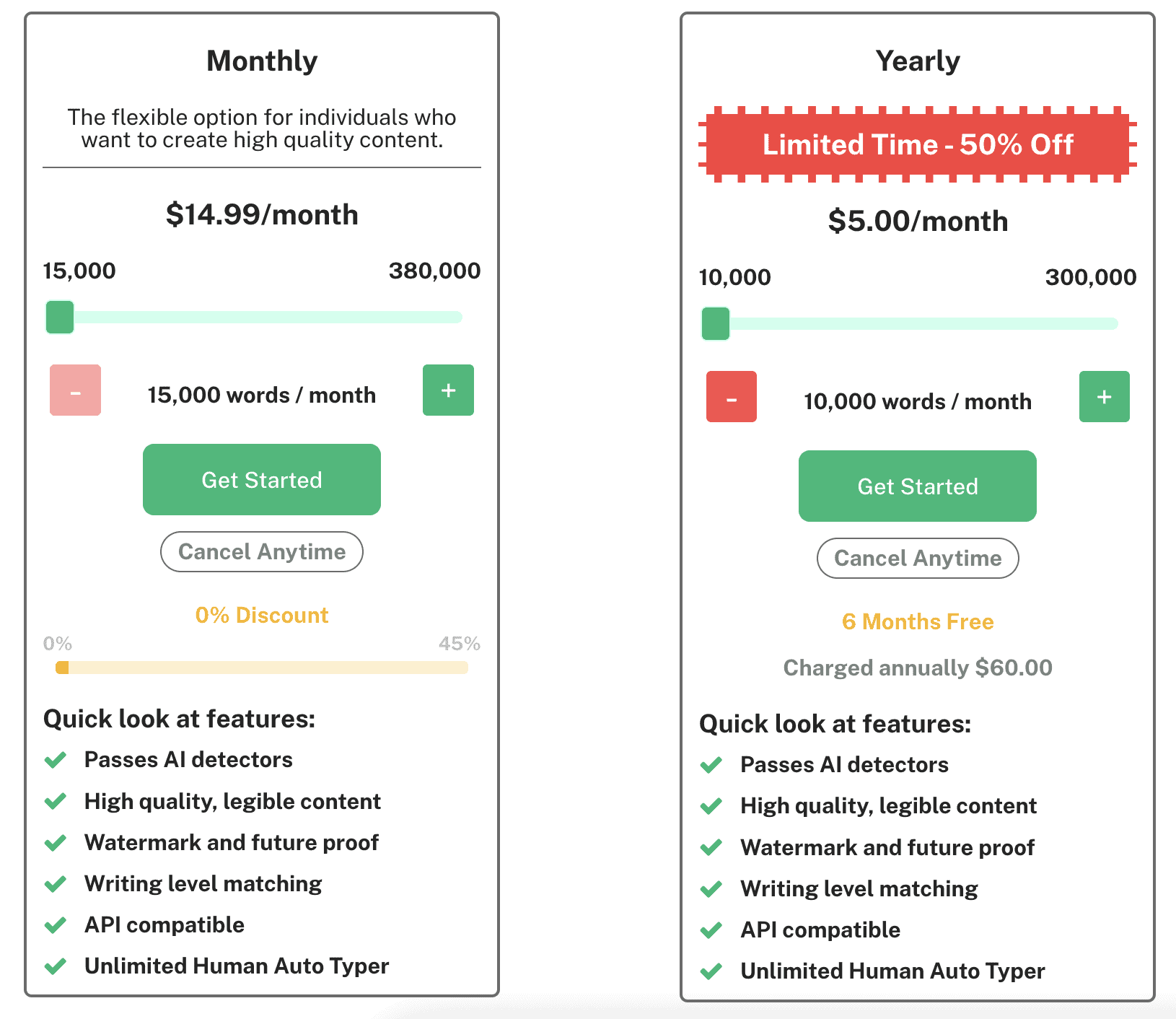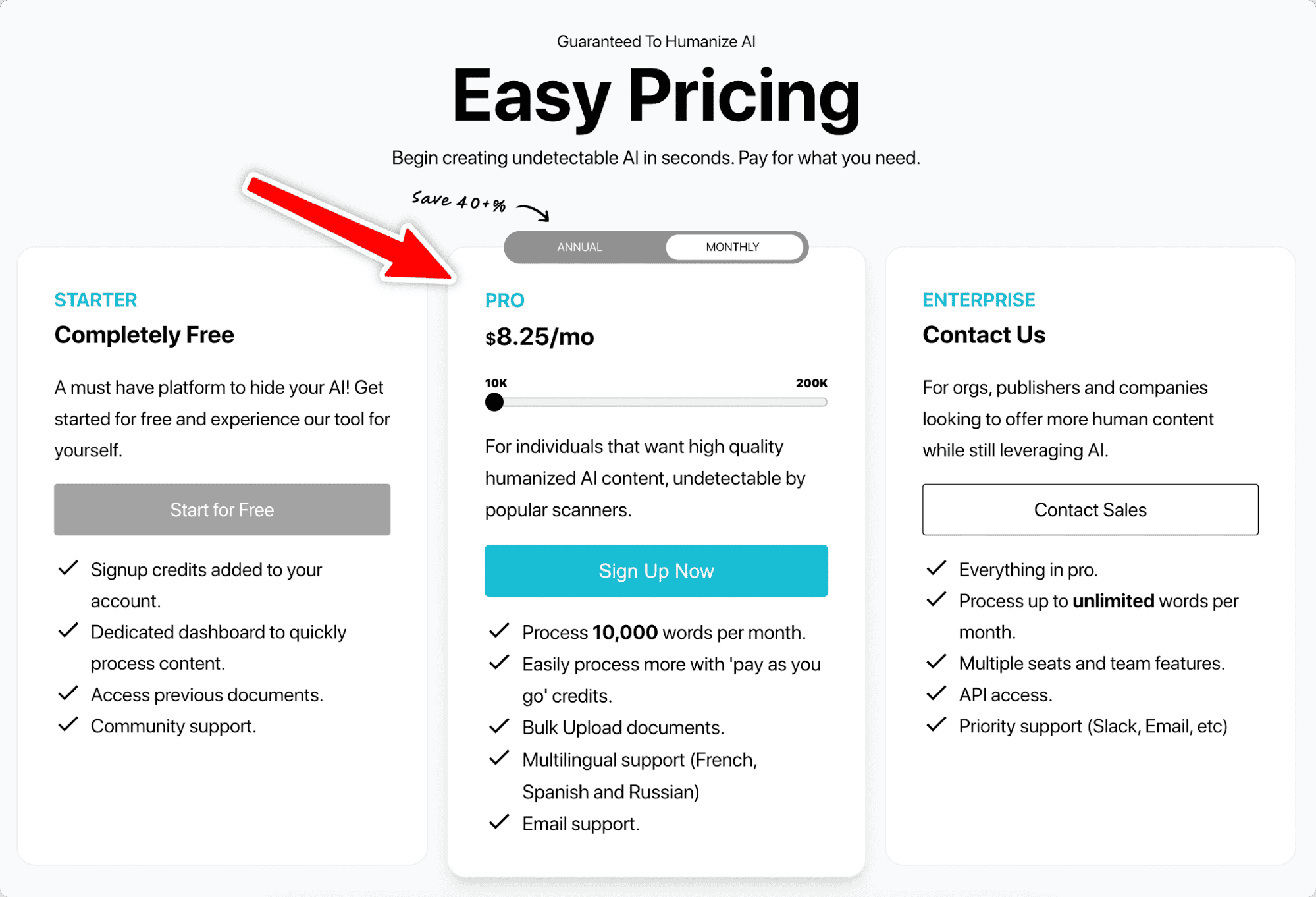 It is on par with the other tools on this list, so I don't think it has any advantages in pricing. You do have to spend more money upfront than Undetectable and HideMyAI, but you pretty much get the same amount of credits.