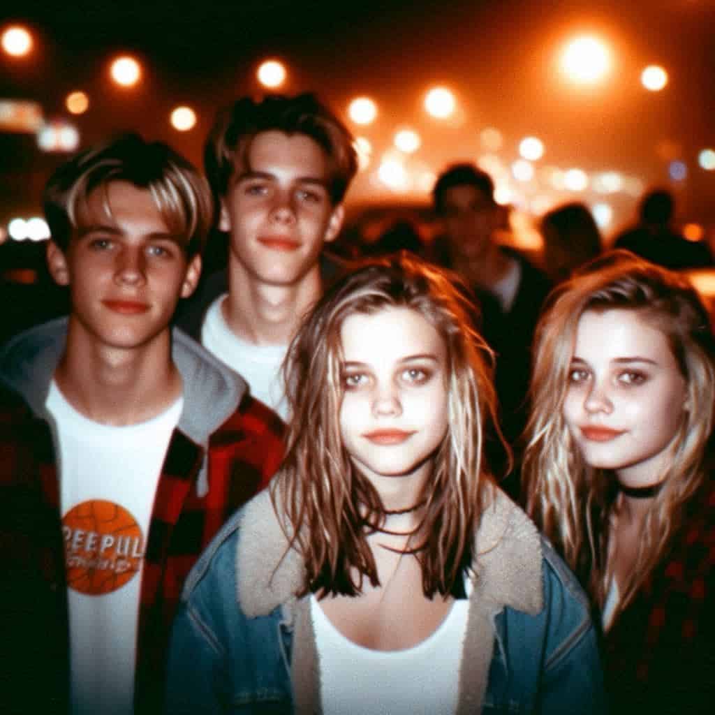 90s 35mm photo slow shutter speed slightly out of focus the night is young and so are we teenagers angst
