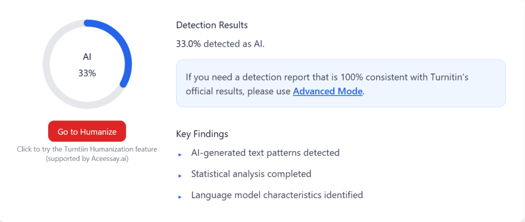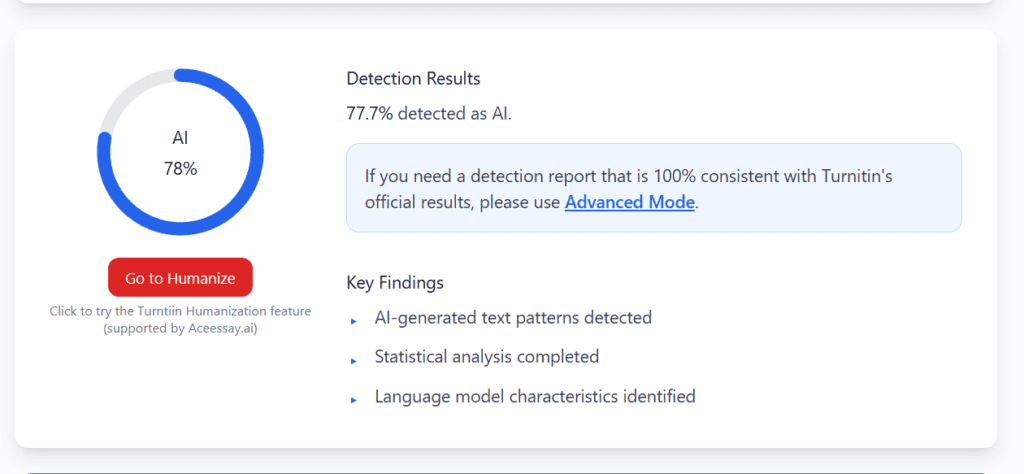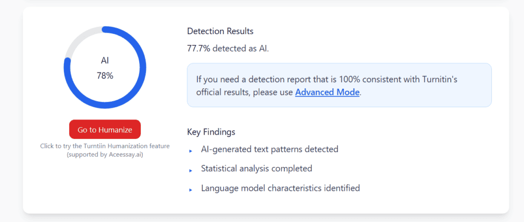 Turnitin:Â Still flagged the text as AI- Generated