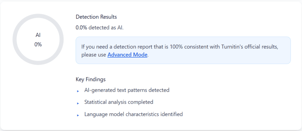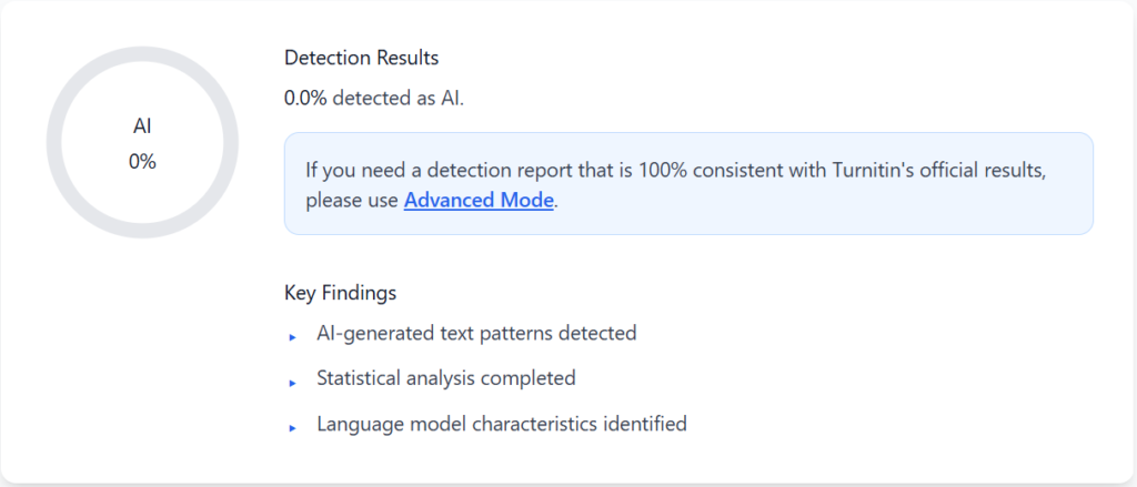 Turnitin: Correctly identified the survey as Human