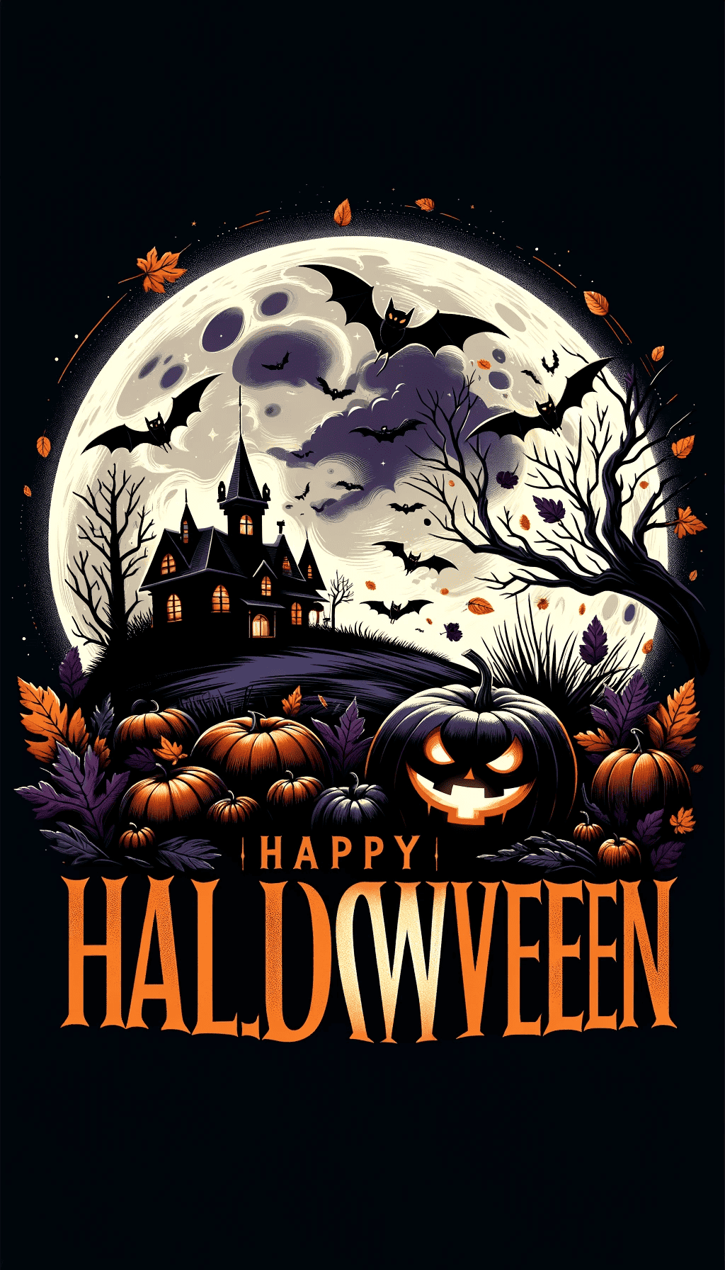 A Halloween postcard inspired by Tarot cards. It must feature an old and creepy mansion.
