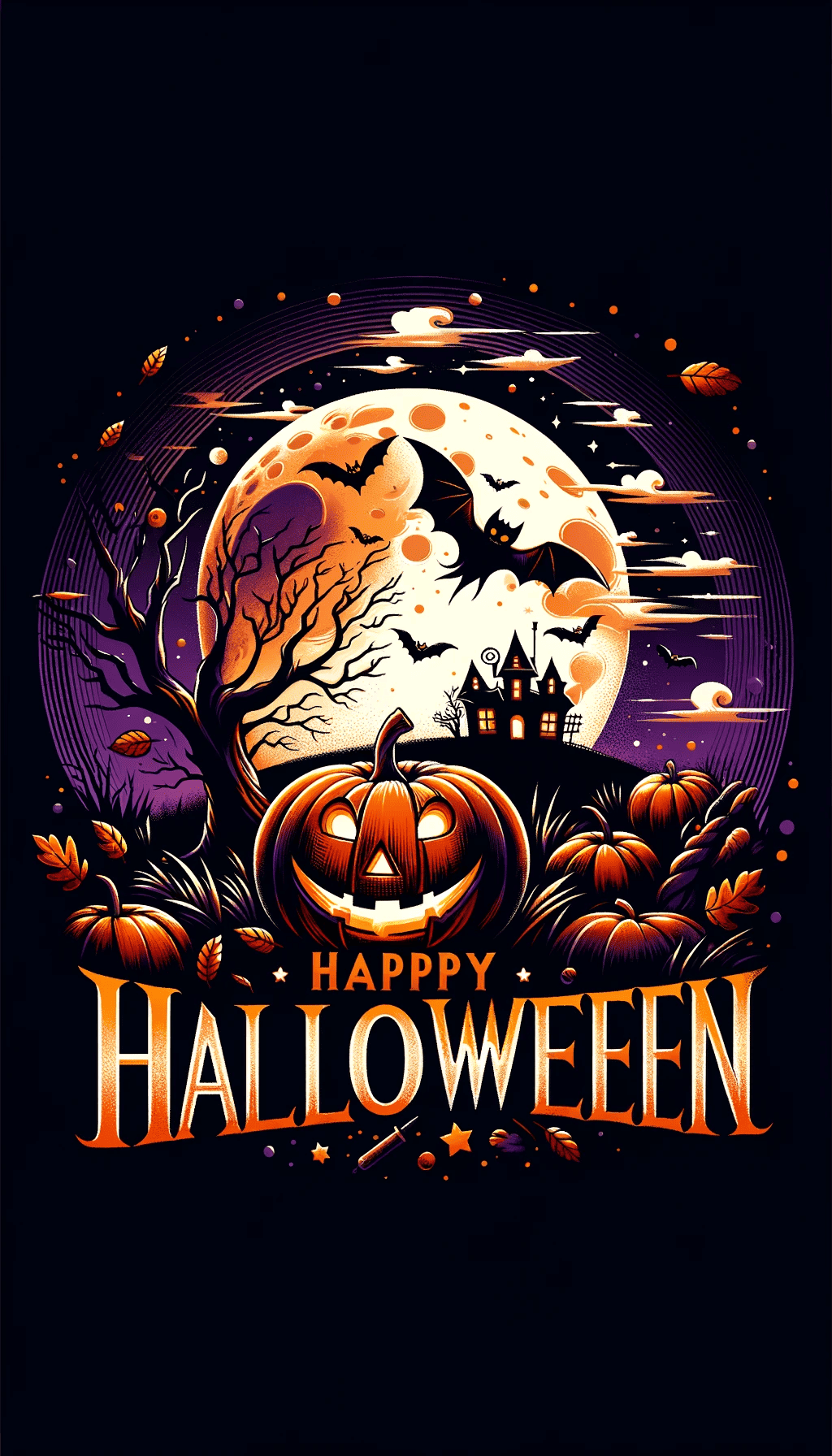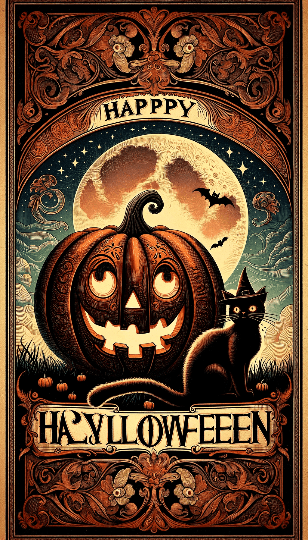 A Halloween postcard inspired by vintage Halloween illustration with a textured paper background.
