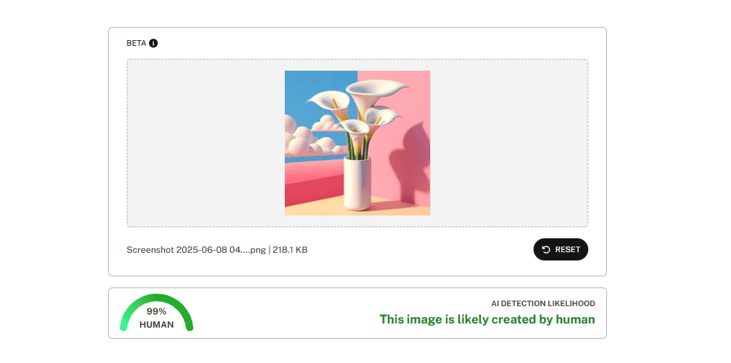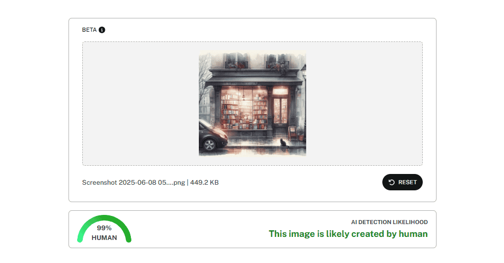 And when you compare this to our previous Firefly test, where Undetectable AI flagged every image with 99% confidence, the contrast is pretty striking. Firefly might be easier for the system to catch or maybe DALL·E’s visuals are just more nuanced.