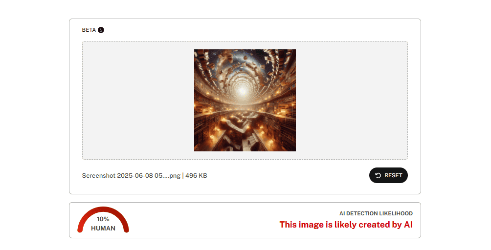 The fact that four images returned a 1% AI likelihood and were flagged as human shows the tool still has limitations. But still, a 10 out of 7 hit rate against a major generator like DALL·E? That’s not nothing.