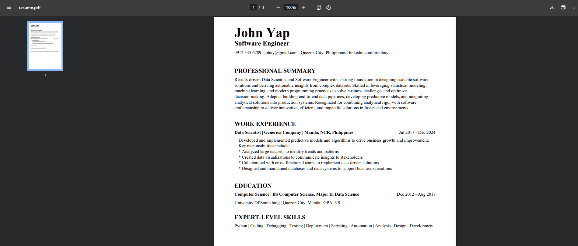 A robot with his resume, generated with GPT