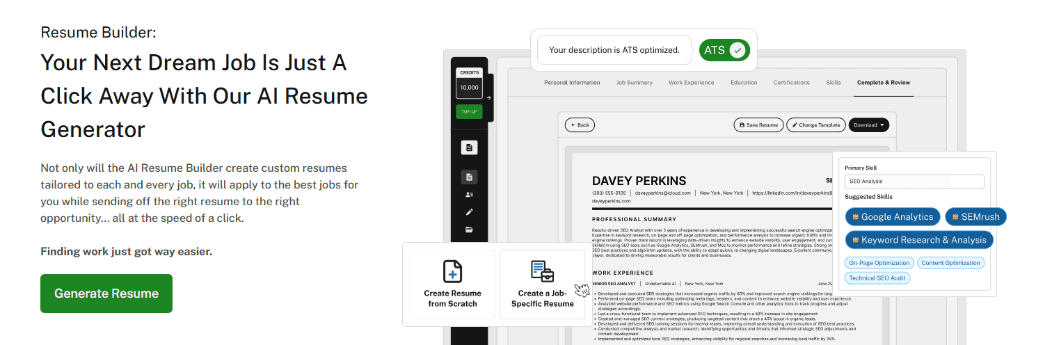 And since it’s part of Undetectable AI, there’s also that underlying strength: everything it produces feels natural and human, not robotic. No “AI smell.” That matters, because hiring managers can spot generic, lifeless resumes from a mile away.