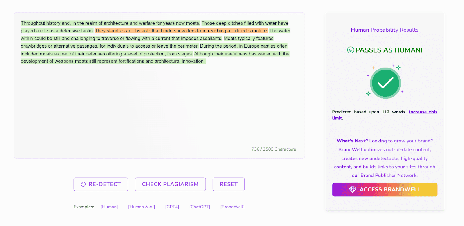 For what it’s worth, we’ve already tested Undetectable AI against BrandWell’s detector before they changed their name — spoiler alert: it won. But who knows? Maybe with their new name came a better detection model.