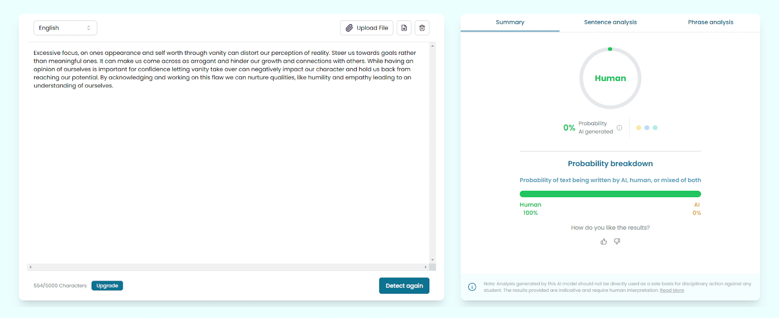 I had low expectations of Isgen (especially since it’s less popular than its competitors) but they proved me wrong. At 34.92%, it’s the most correct AI detector (behind Winston, which mind you, is a paid service) against Undetectable AI, the most potent AI humanizer in 2024.