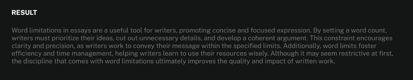 By inputting a piece of text into Undetectable AI and pressing “Humanize,” you can easily get a paraphrased version of your text that will be identified as human by most detectors. You can also change the readability, use case, and balance level of your output to match the intent of your original text.