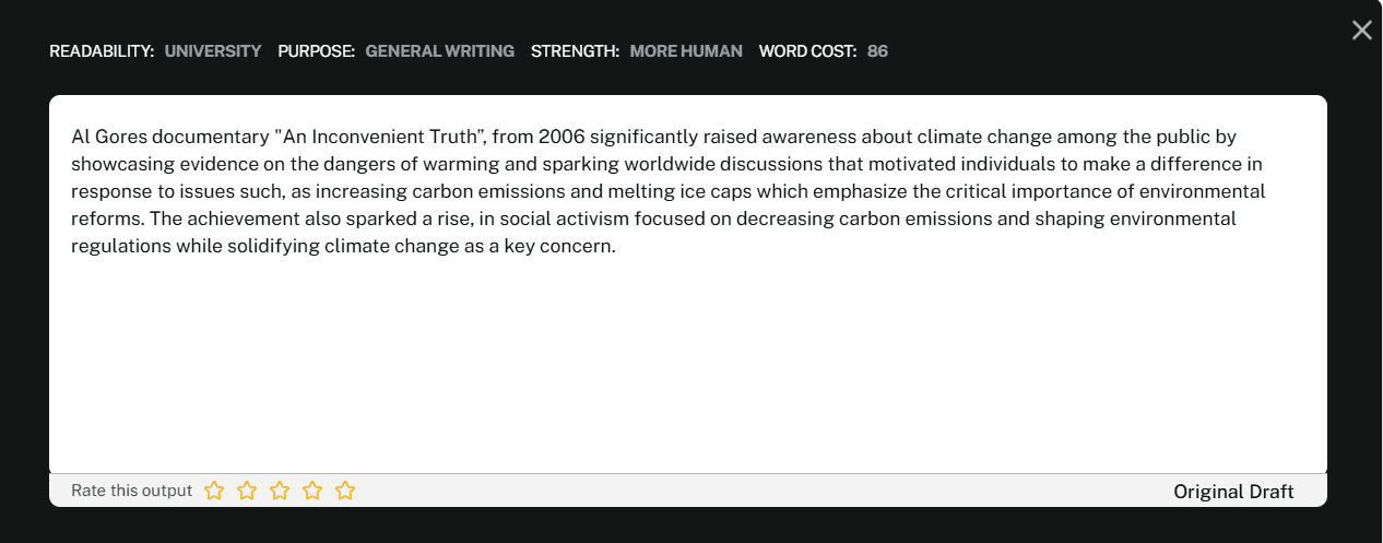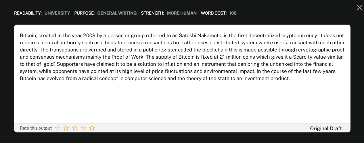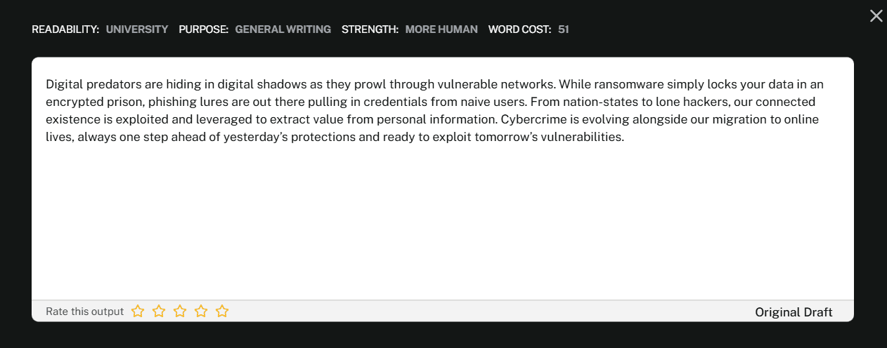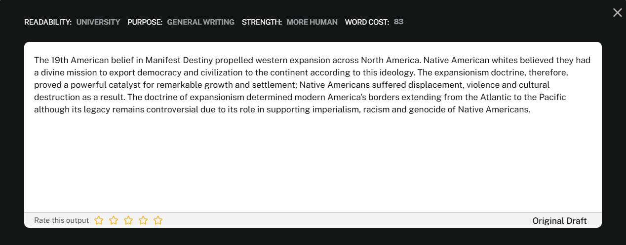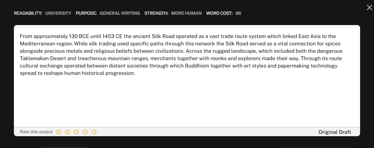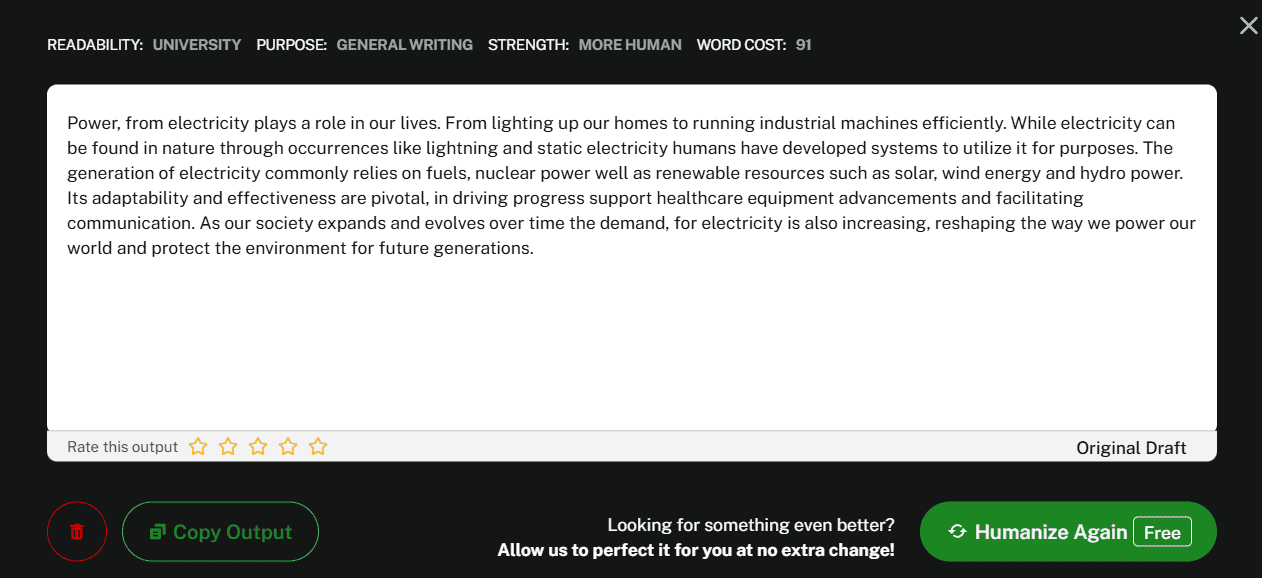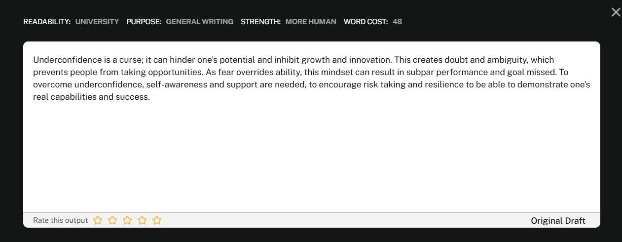 Undetectable AI is an online paraphrasing tool that works as an AI humanizer and a detection bypassing tool. All you need to do is copy and paste your text into their app and you’ll get a tweaked version of it that can hide from AI detection.