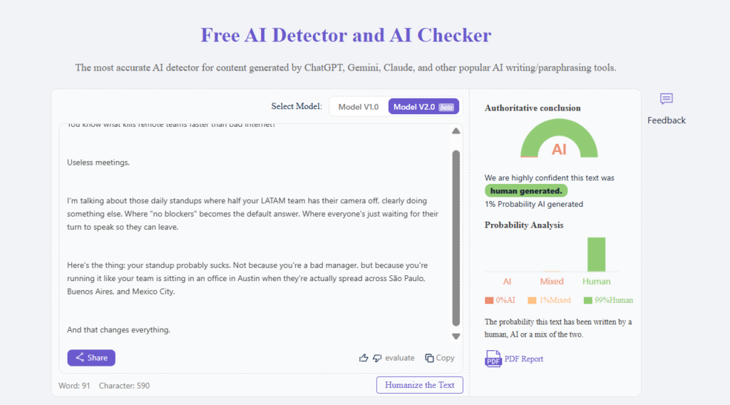 One thing worth noting, MyDetector.ai's text detection is still running on their Model V2 beta.