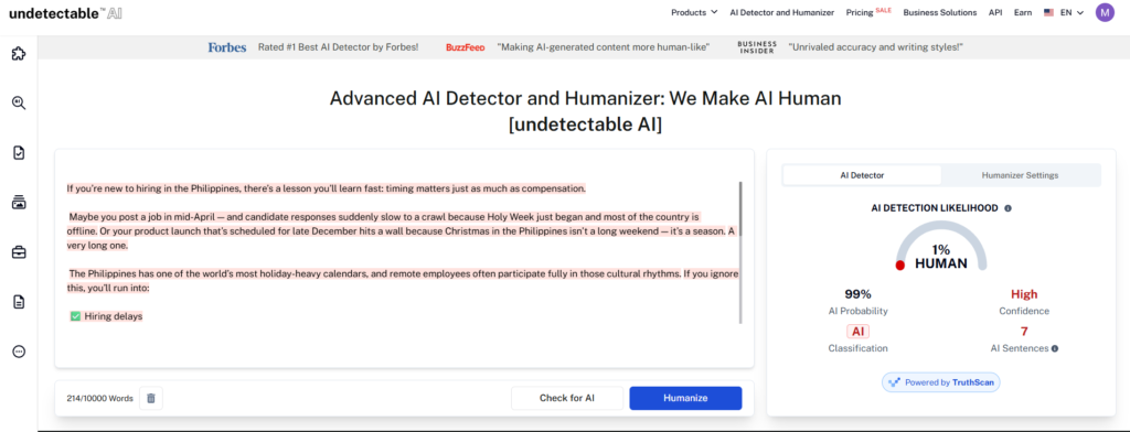 The detector piece is what interests me most here — because a team that built the humanizer knows exactly what patterns detectors look for.