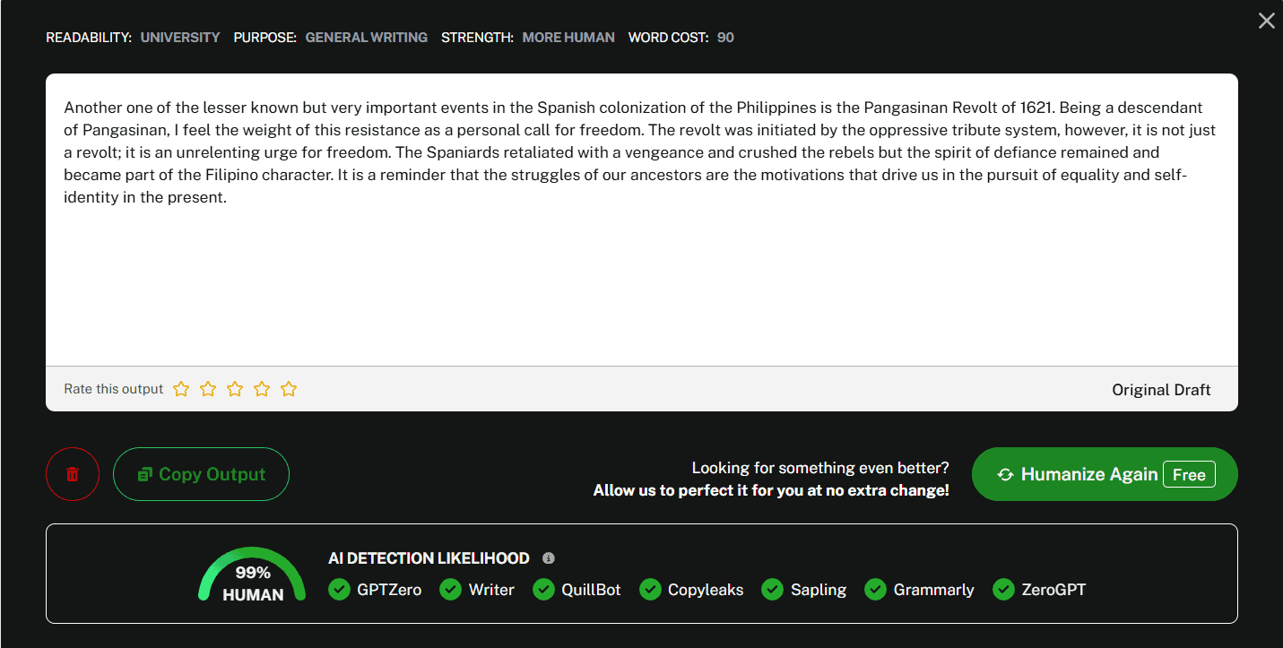In other words, if a detector can reliably flag Undetectable AI output, that detector deserves respect.