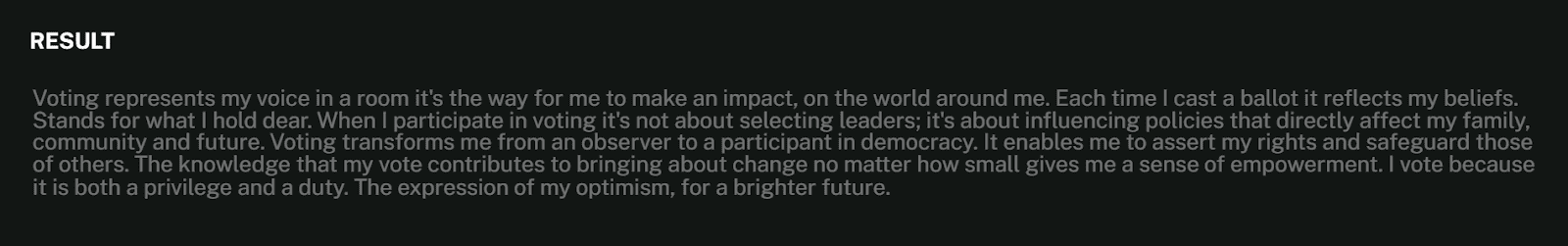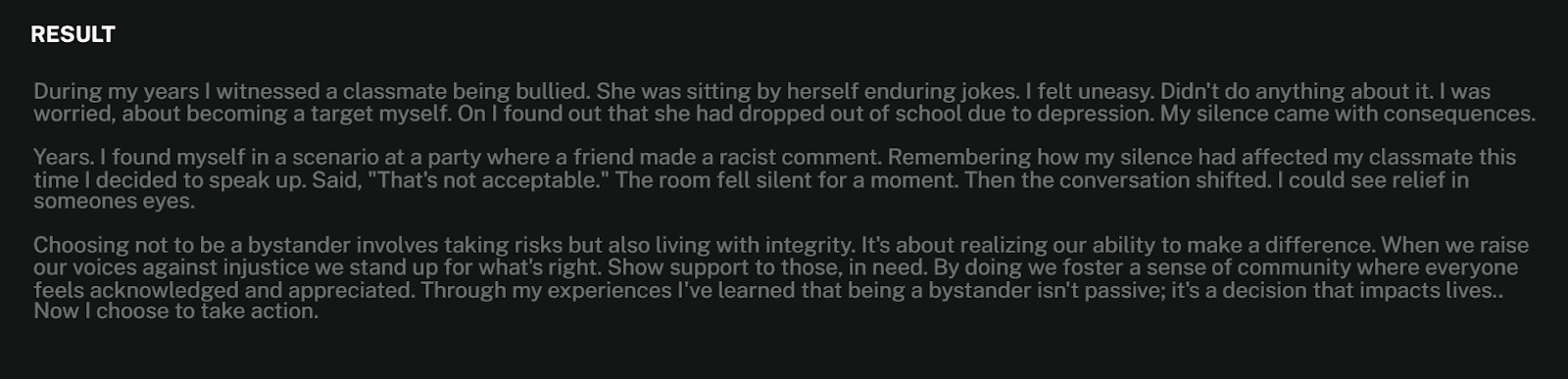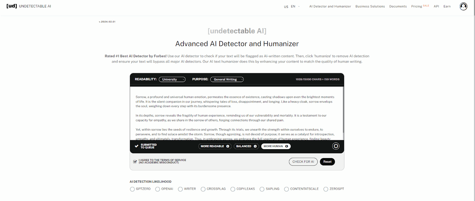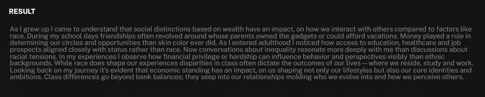 If you’re using this in an academic context, your teacher will be quick to note that — while the content of the essay may have merit — its poor structure and numerous errors lowers its readability. But don’t fret, instead follow these instructions on how to properly use Undetectable AI without sacrificing AI likelihood score.