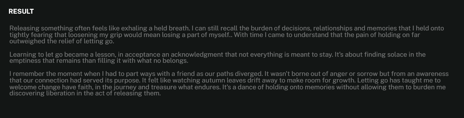 But heed my warning: it’s not actually flawless — in fact, it’s so far from it. Removing AI detectors from the equation is just the start of truly creating human-like writing, but the second and most important part is actually applying it to your input while retaining its readability.